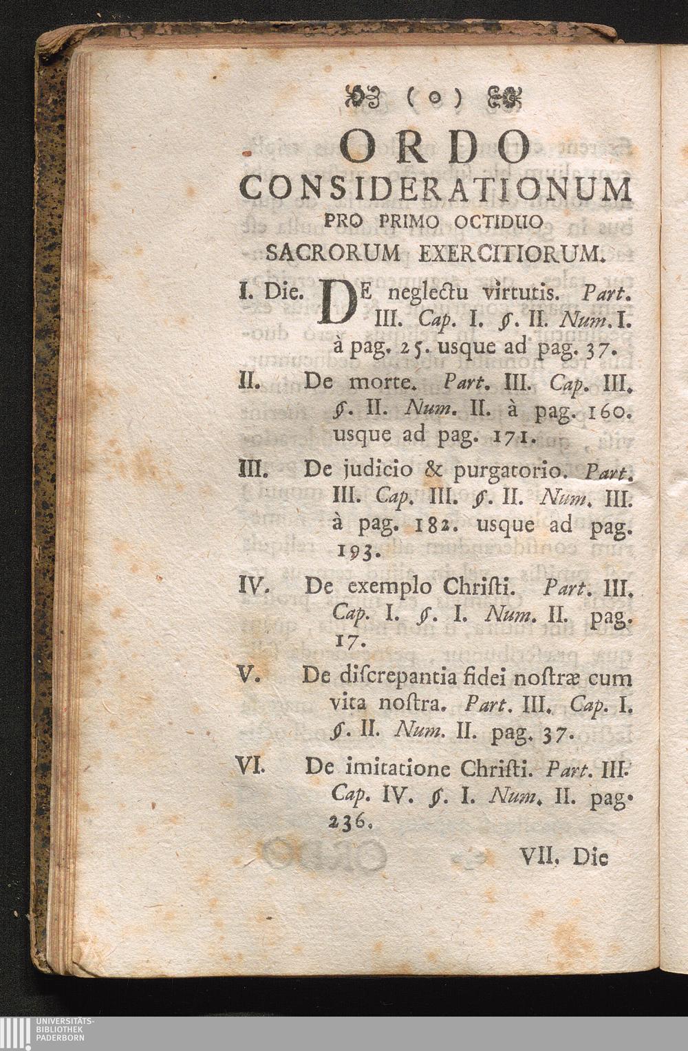 Ordo Considerationum Pro Primo Octiduo Sacrorum Exercitiorum.