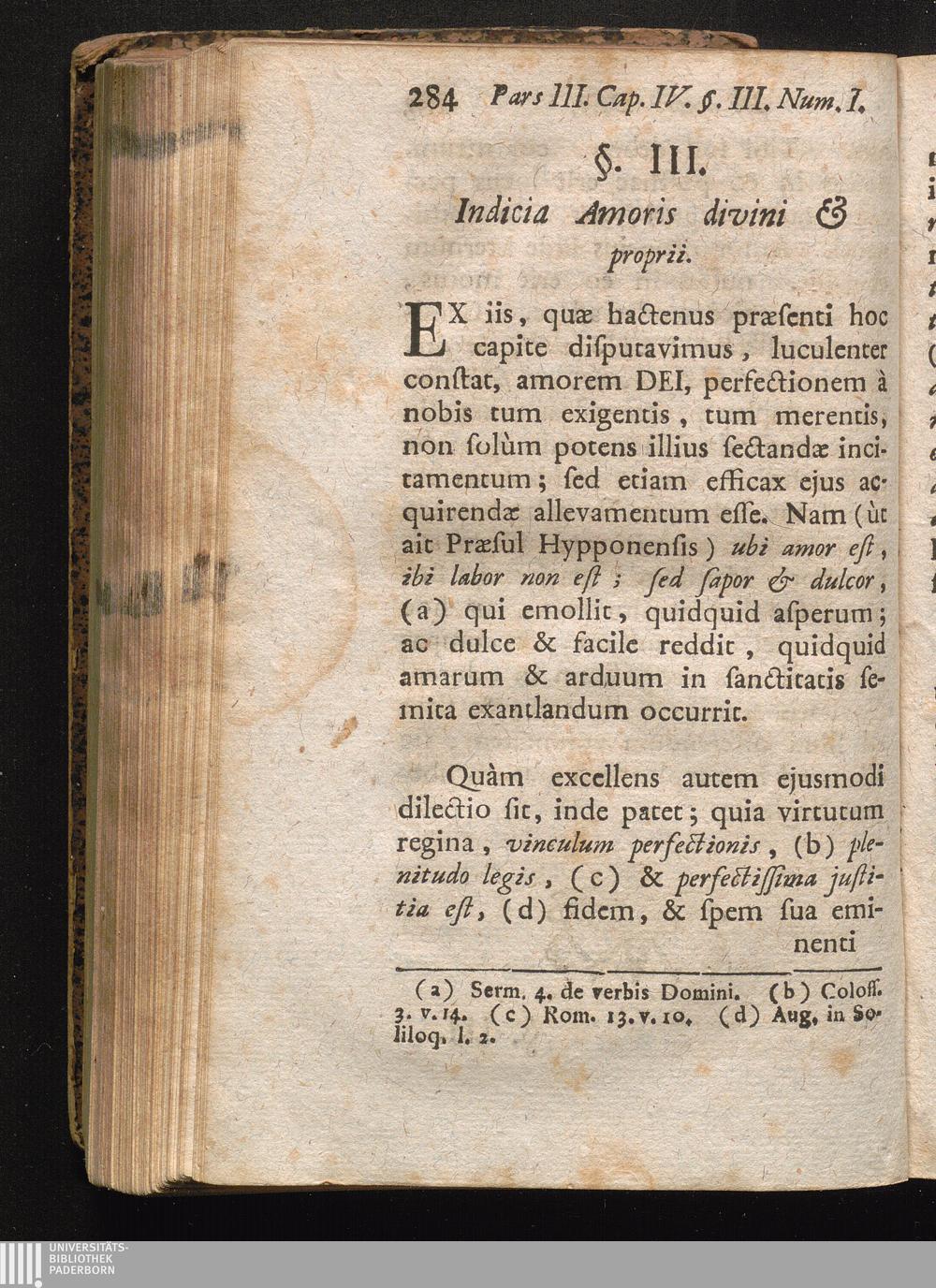 §.III. Indicia amoris divini proprii.