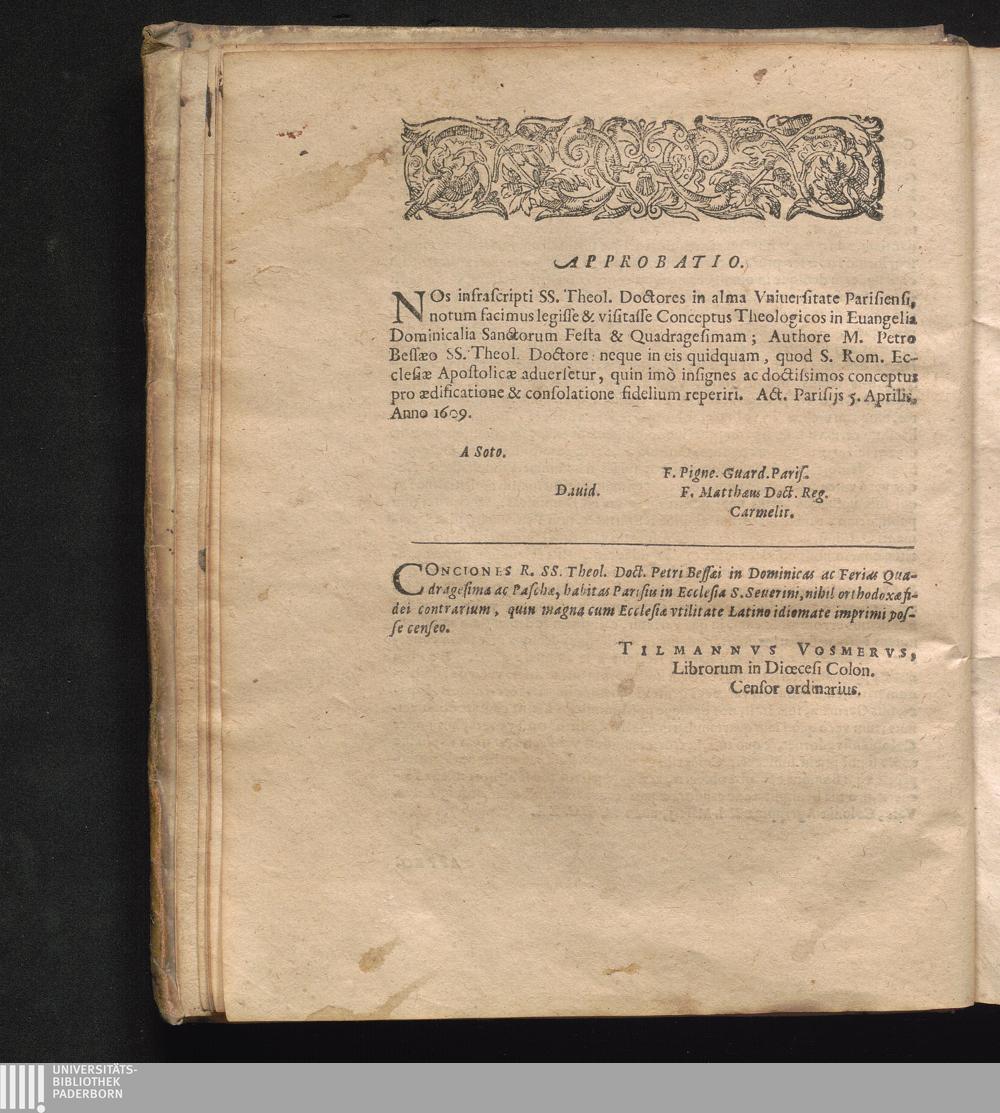 Conciones siue Conceptvs Theologici Ac Prædicabiles R. D. Petro Bessæi SS Theol.[...]