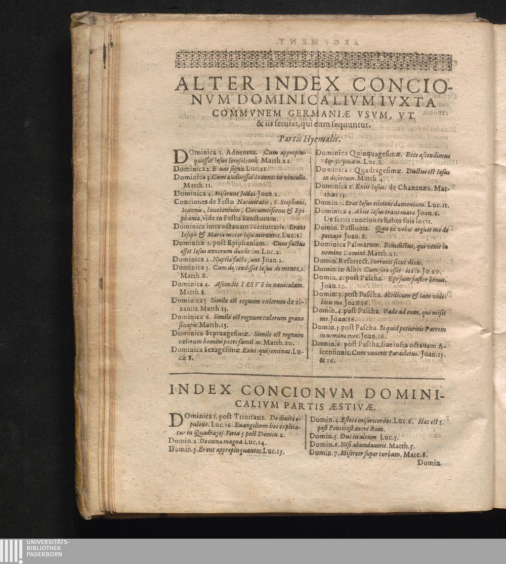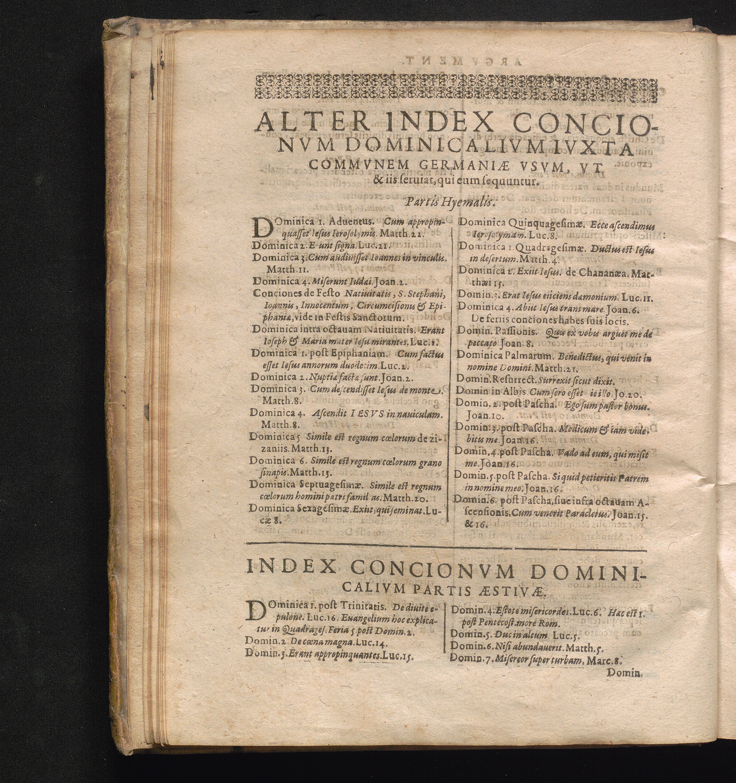 Alter Index Concionvm Dominicalivm Ivxta Commvnem Germaniæ Vsvm, Vt & iis seruiat,[...]