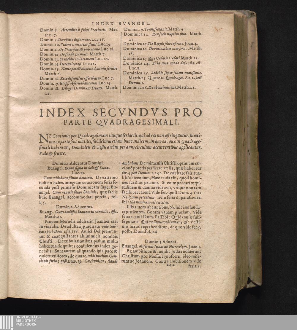 Index Secvndvs Pro Parte Qvadragesimali.