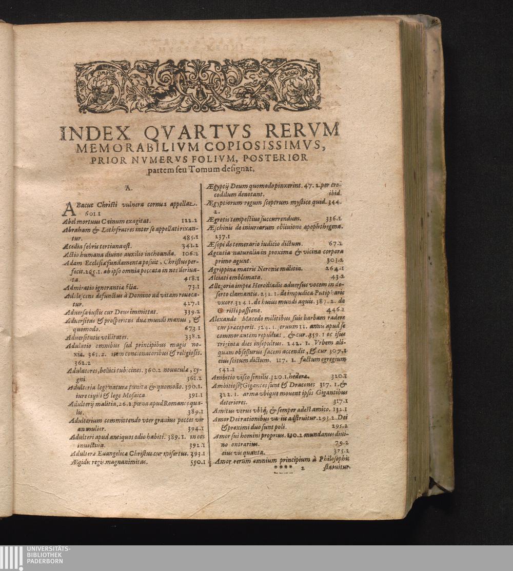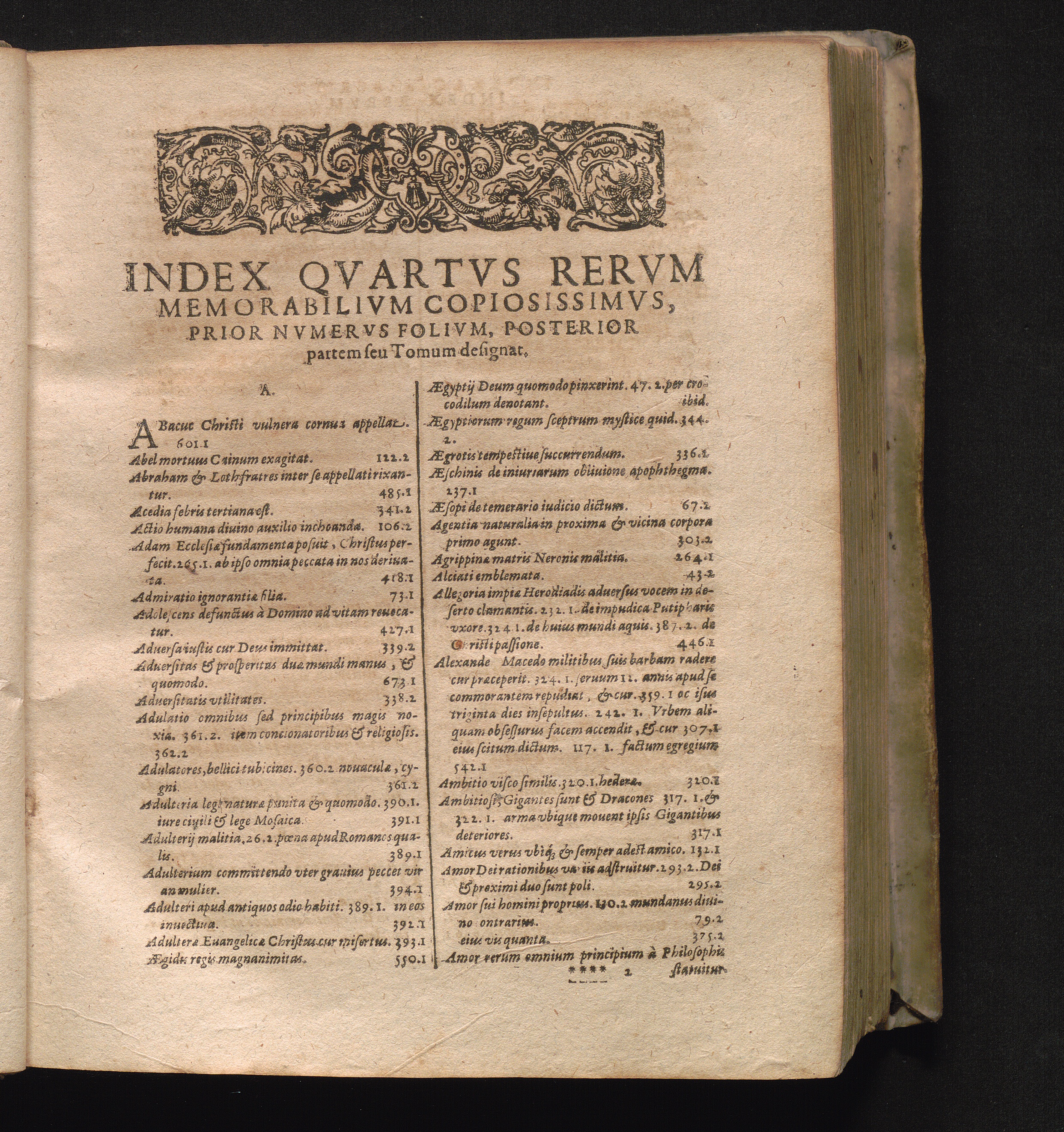 Index Qvartvs Rervm Memorabilivm Copiosissimvs, Prior Nvmervs Folivm, Posterior partem[...]
