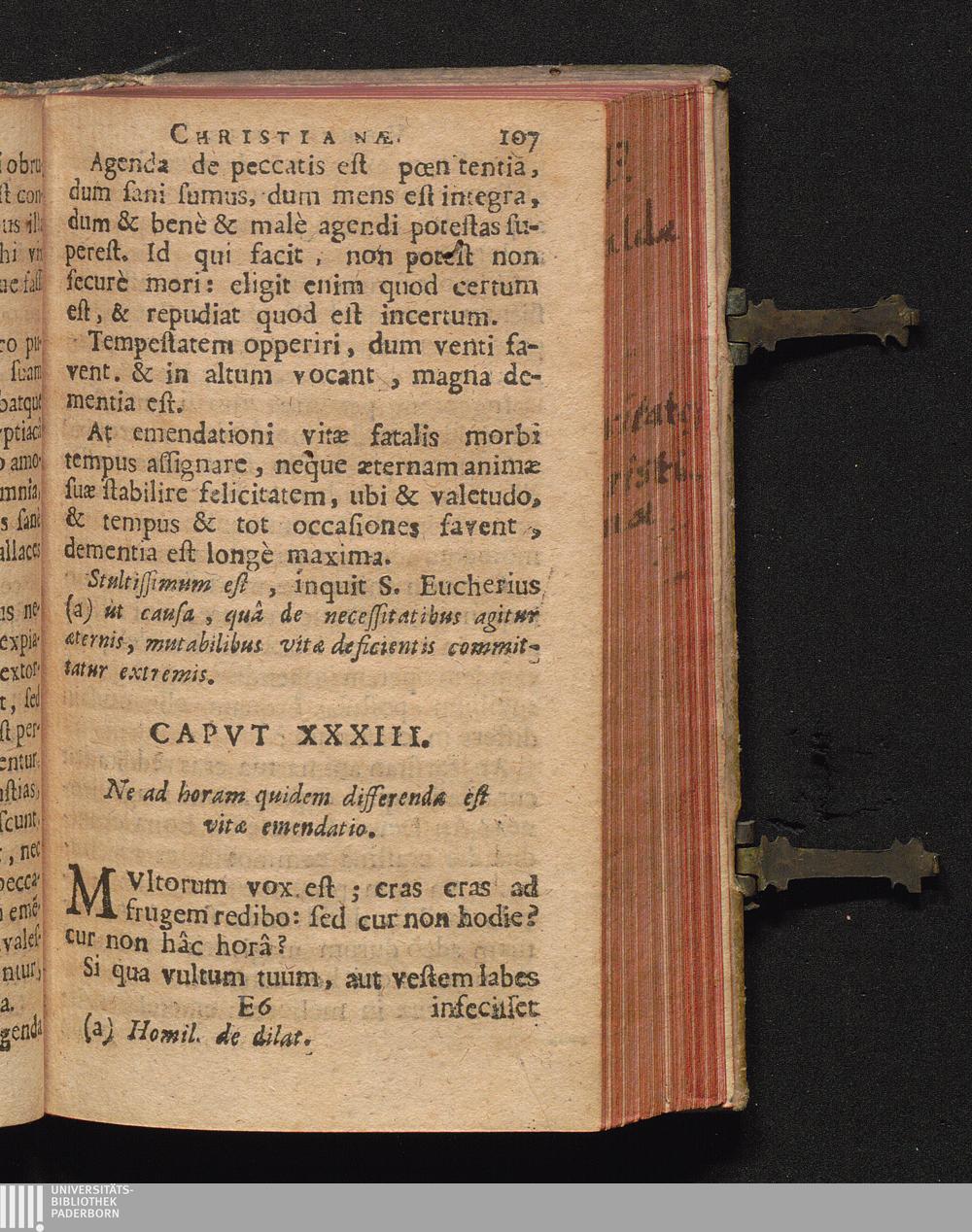 33. Cap. Ne ad horam quidem differenda est vitæ emendatio.