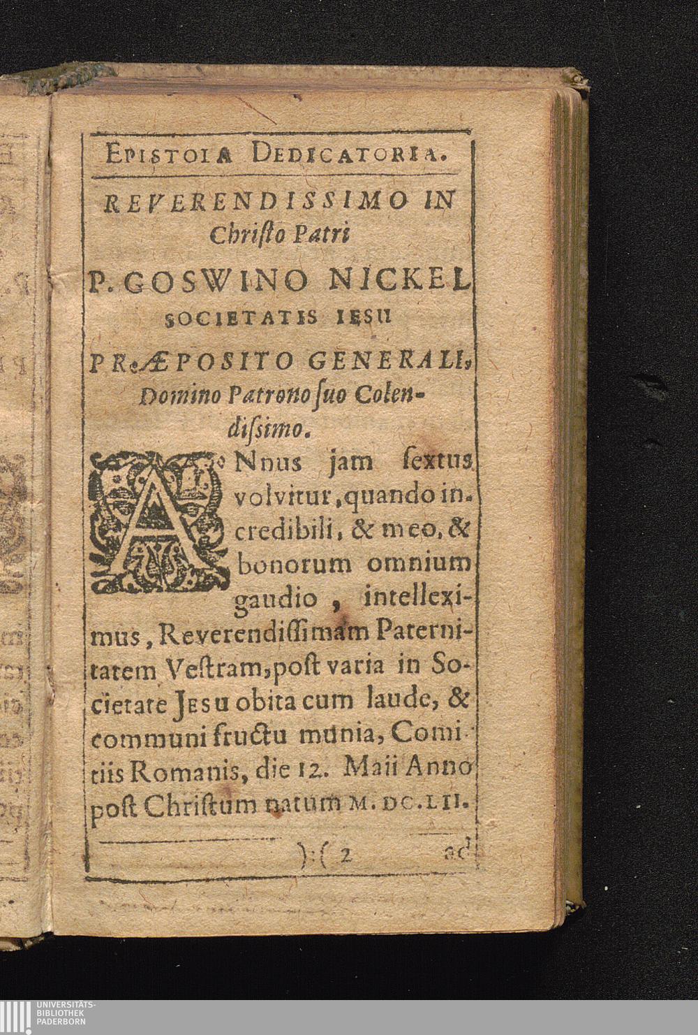 Reverendissimo In Christo Patri P. Goswino Nickel Societatis Iesu. Præposito Generali,[...]