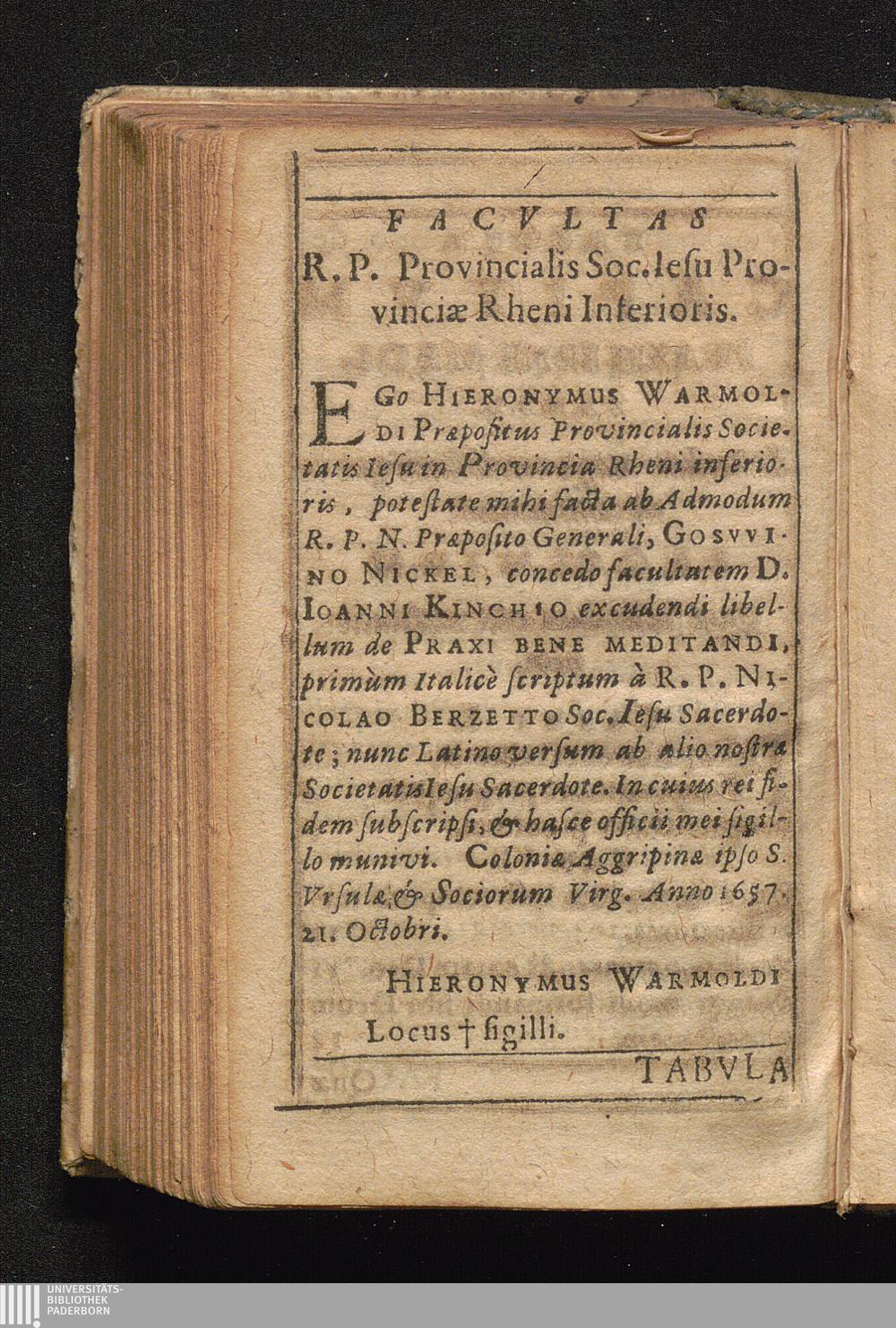 Facvltas R.P. Provincialis Soc. Iesu Provinciæ Rheni Inferioris.