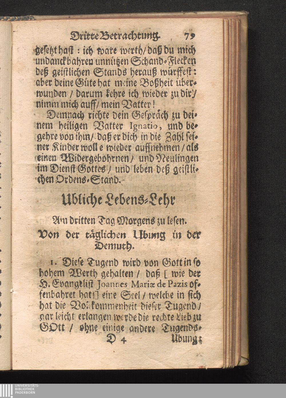Ubliche Lebens-Lehr. Von der täglichen Ubung in der Demuth.