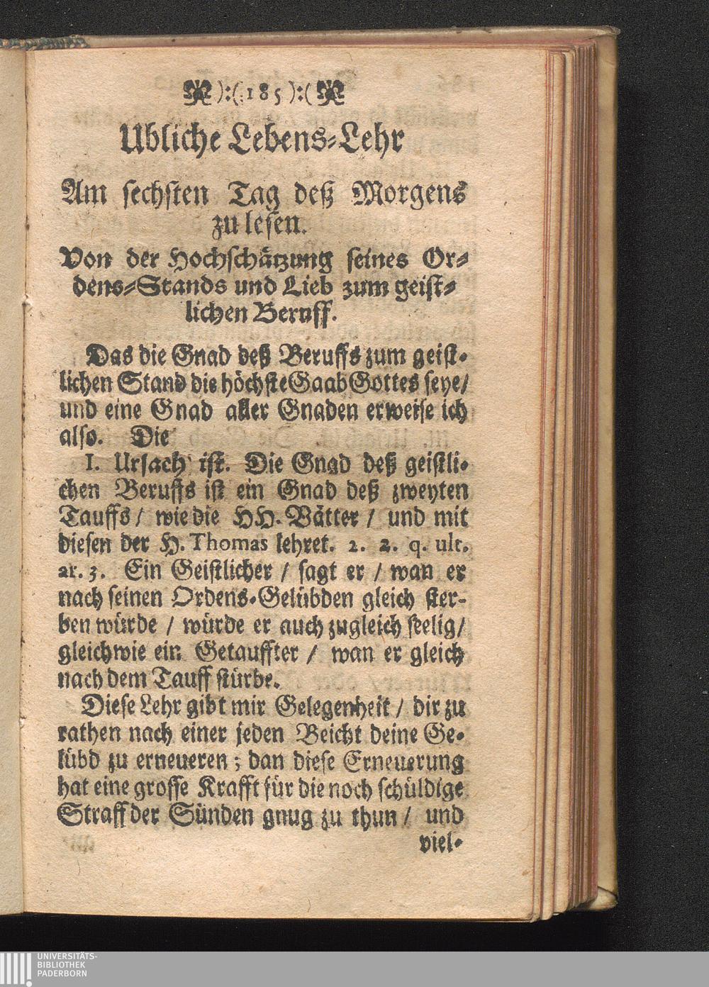 Ubliche Lebens-Lehr. Von der Hochschätzung seines Ordens-Stand/ und Lieb zum geistlichen[...]
