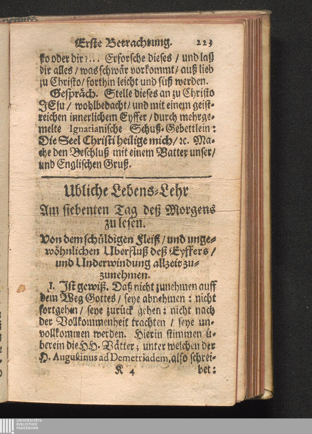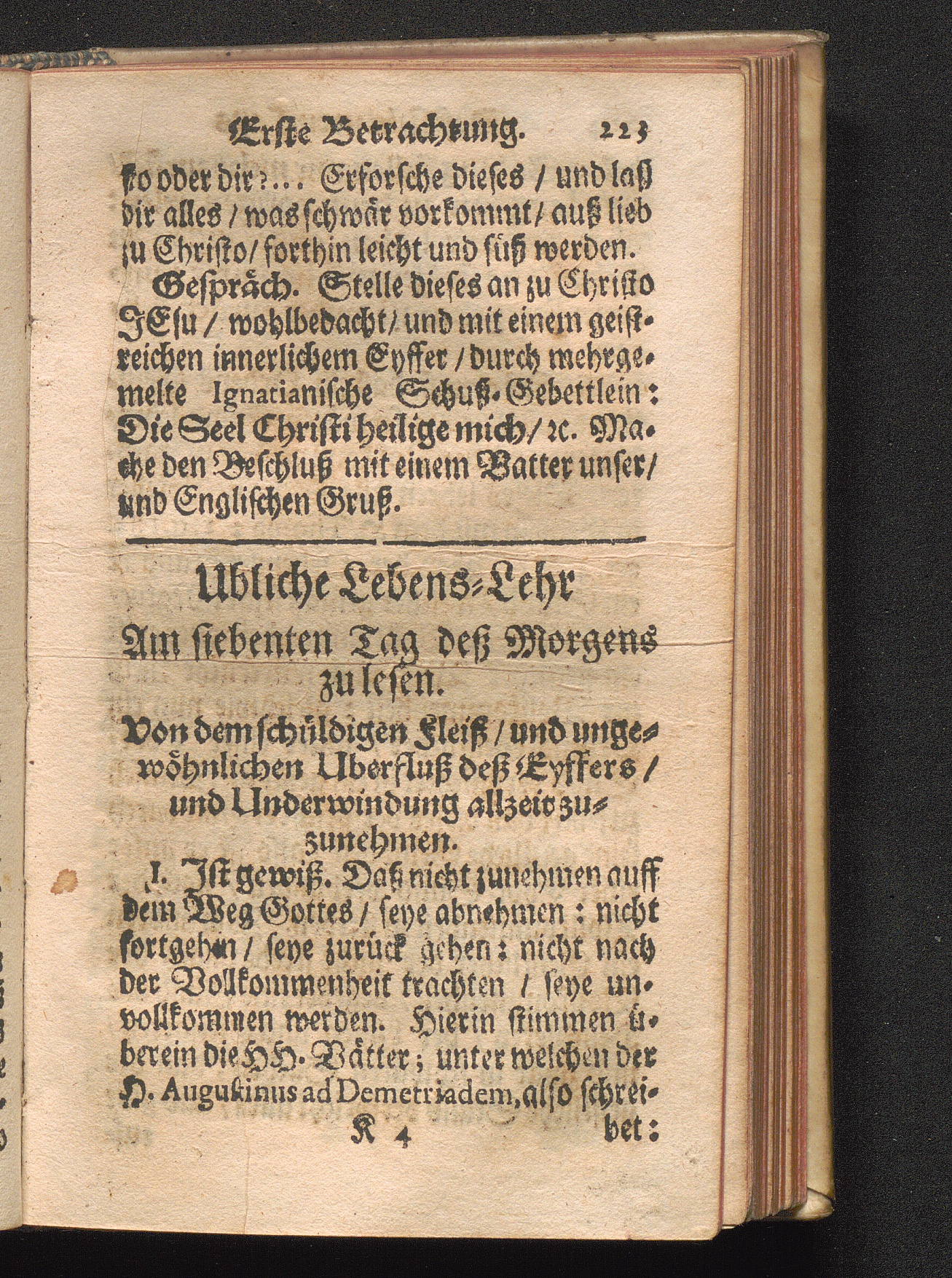Ubliche Lebens-Lehr. Von dem schüldigen Fleiß allzeit zuzunehmen in der Vollkomm[...]