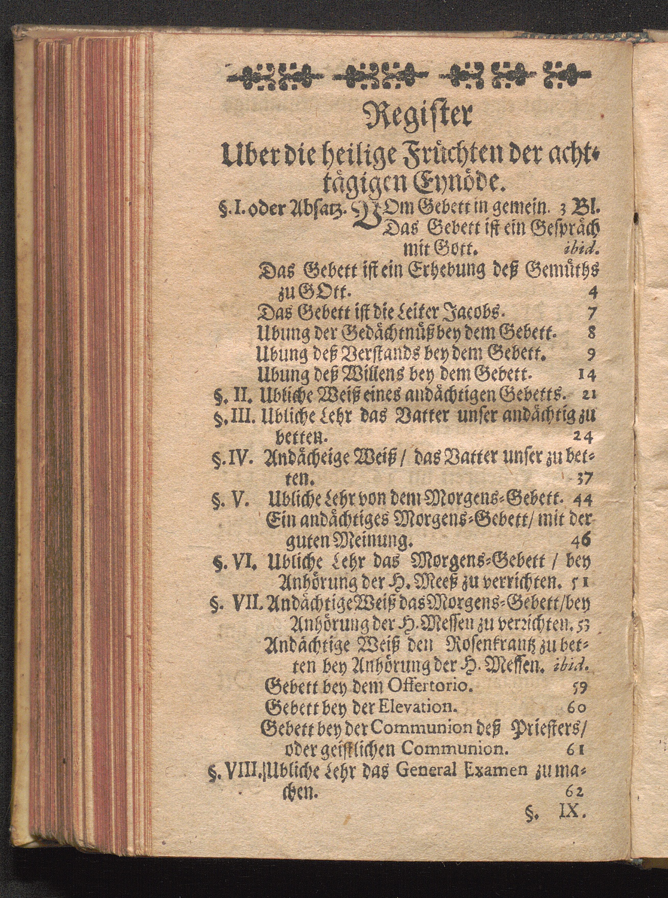 Register Uber die heilige Früchten der achttägigen Eynöde.