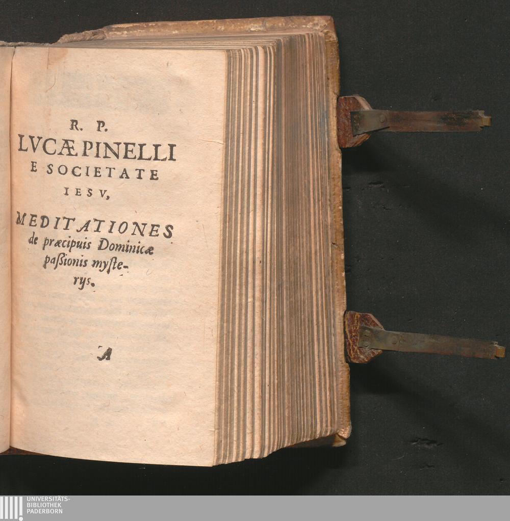 R. P. Lvcæ Pinelli Societatis Iesv, Theologi, Exercitia Spiritvalia Qvadraginta, De Sacrosancto Eucharistiæ Sacramento : Vna Cvm Aliis Eivsdem Authoris Meditationum opusculis, hactenus non editis, quorum seriem sequens pagina demonstrat / Omnia Recenter Per F. Antonivm Dvlcken Carthusianum ex Italico in Latinum conuersa