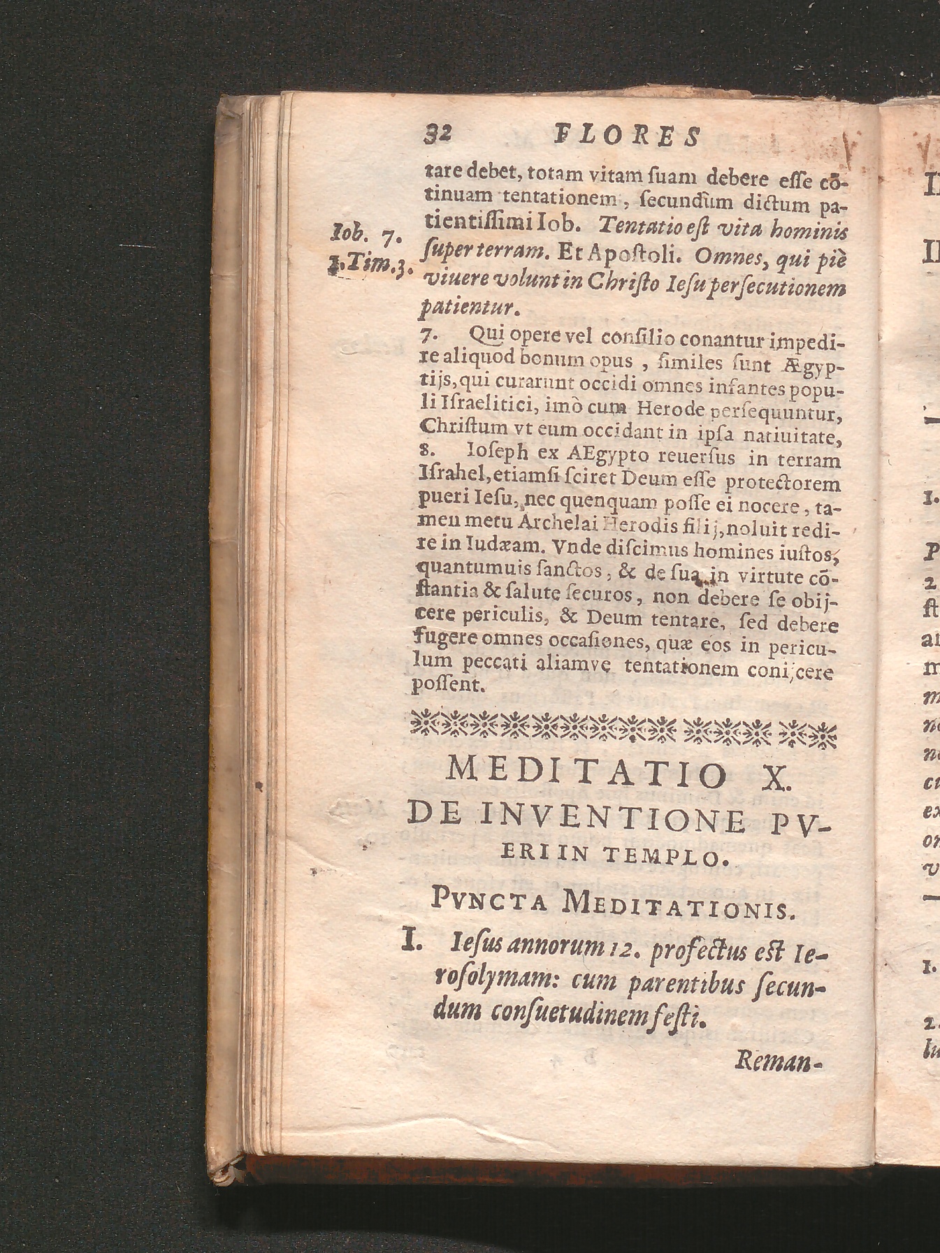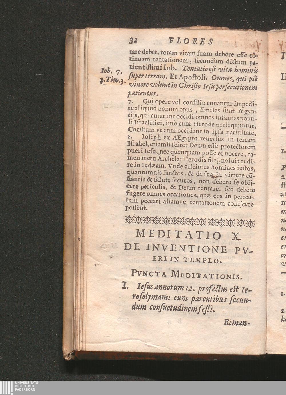 Flores Meditationvm : Ex S. Ignatio, Vincentio Bruno, Ioanne Busaeo, Aliisq[ue] Soc. Iesv PP.bus Decerpti, In quibus continentur Meditationes ; I. De pleris[que] mysteriis vitae Christi. II. De sacratißima eius Paßione. III. De omnibus Dominicis totius anni. IV. De præcipuis festis Sanctorum ... / [Philippus Bebius]