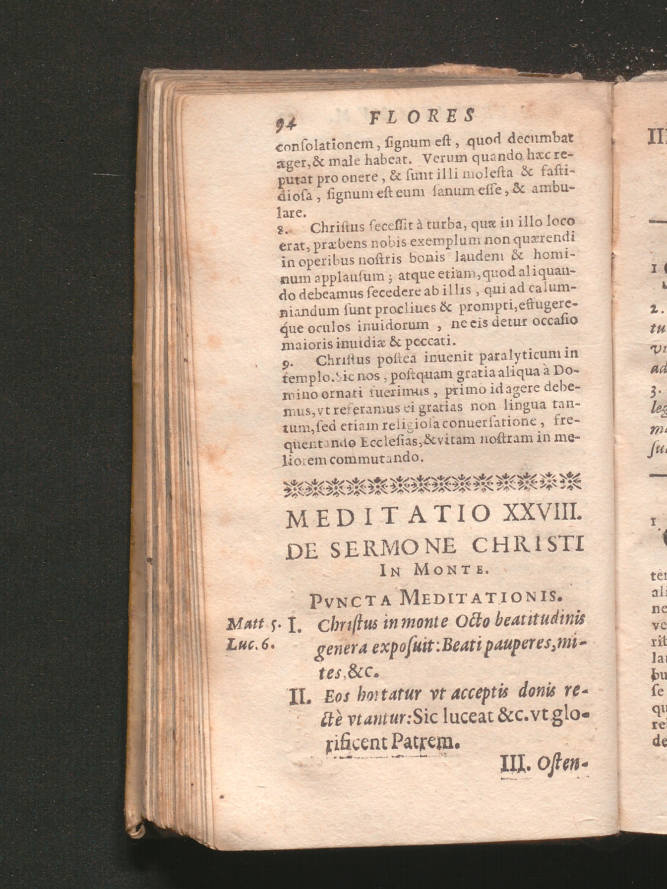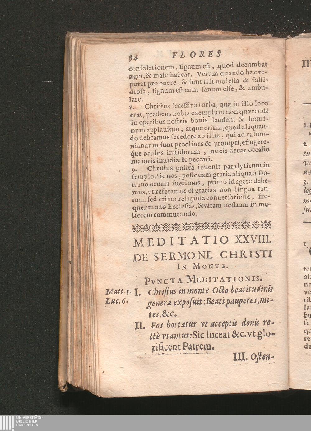 Flores Meditationvm : Ex S. Ignatio, Vincentio Bruno, Ioanne Busaeo, Aliisq[ue] Soc. Iesv PP.bus Decerpti, In quibus continentur Meditationes ; I. De pleris[que] mysteriis vitae Christi. II. De sacratißima eius Paßione. III. De omnibus Dominicis totius anni. IV. De præcipuis festis Sanctorum ... / [Philippus Bebius]