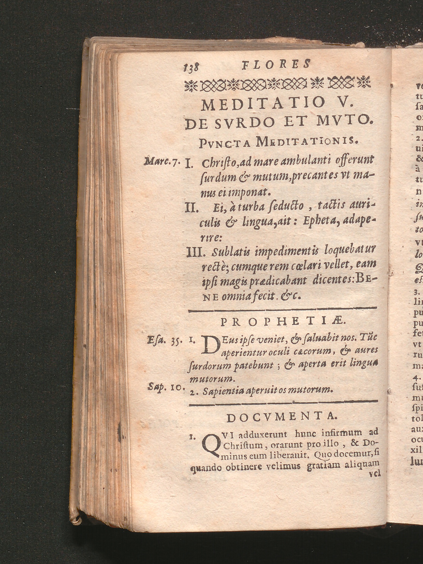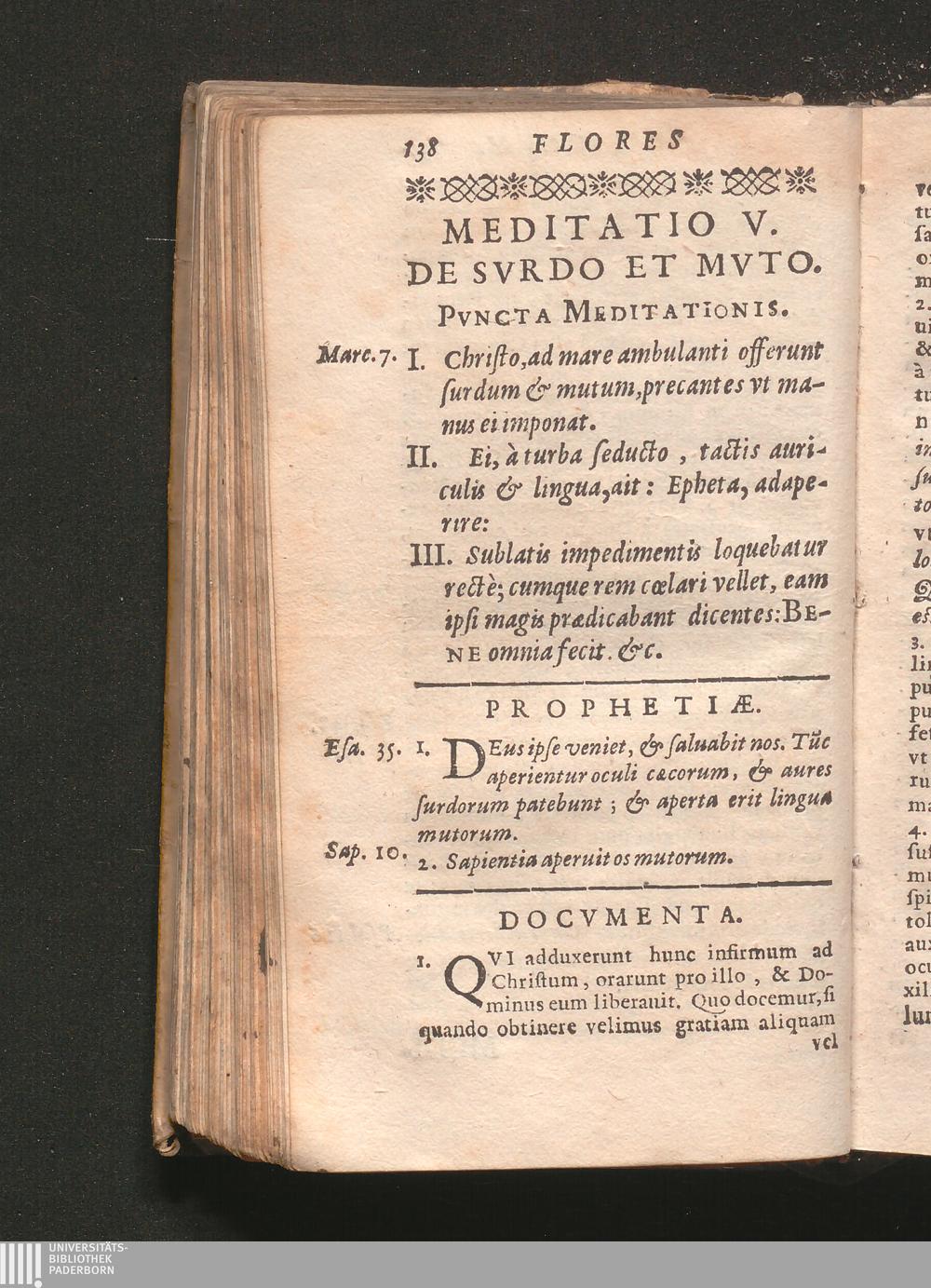 Flores Meditationvm : Ex S. Ignatio, Vincentio Bruno, Ioanne Busaeo, Aliisq[ue] Soc. Iesv PP.bus Decerpti, In quibus continentur Meditationes ; I. De pleris[que] mysteriis vitae Christi. II. De sacratißima eius Paßione. III. De omnibus Dominicis totius anni. IV. De præcipuis festis Sanctorum ... / [Philippus Bebius]