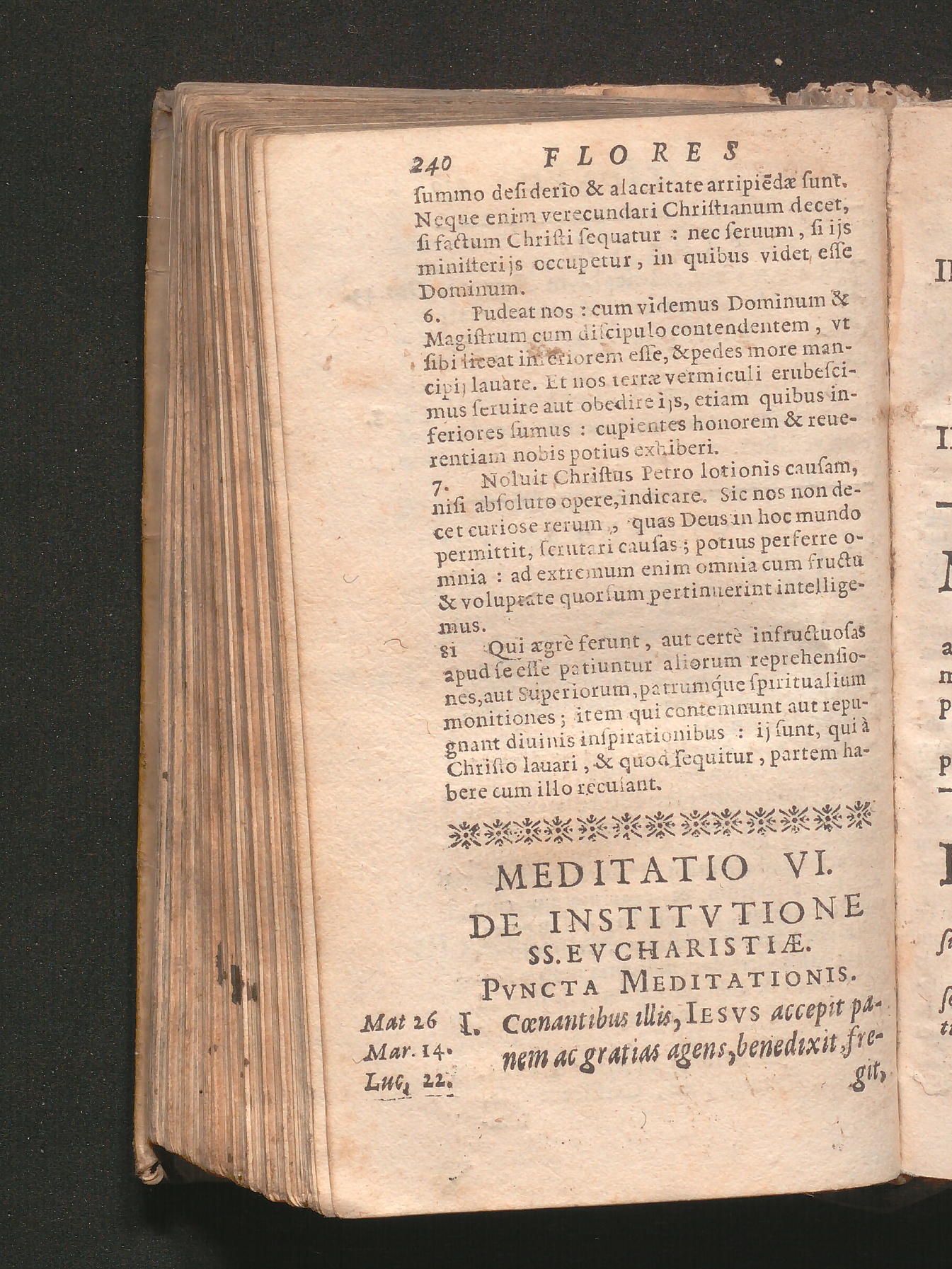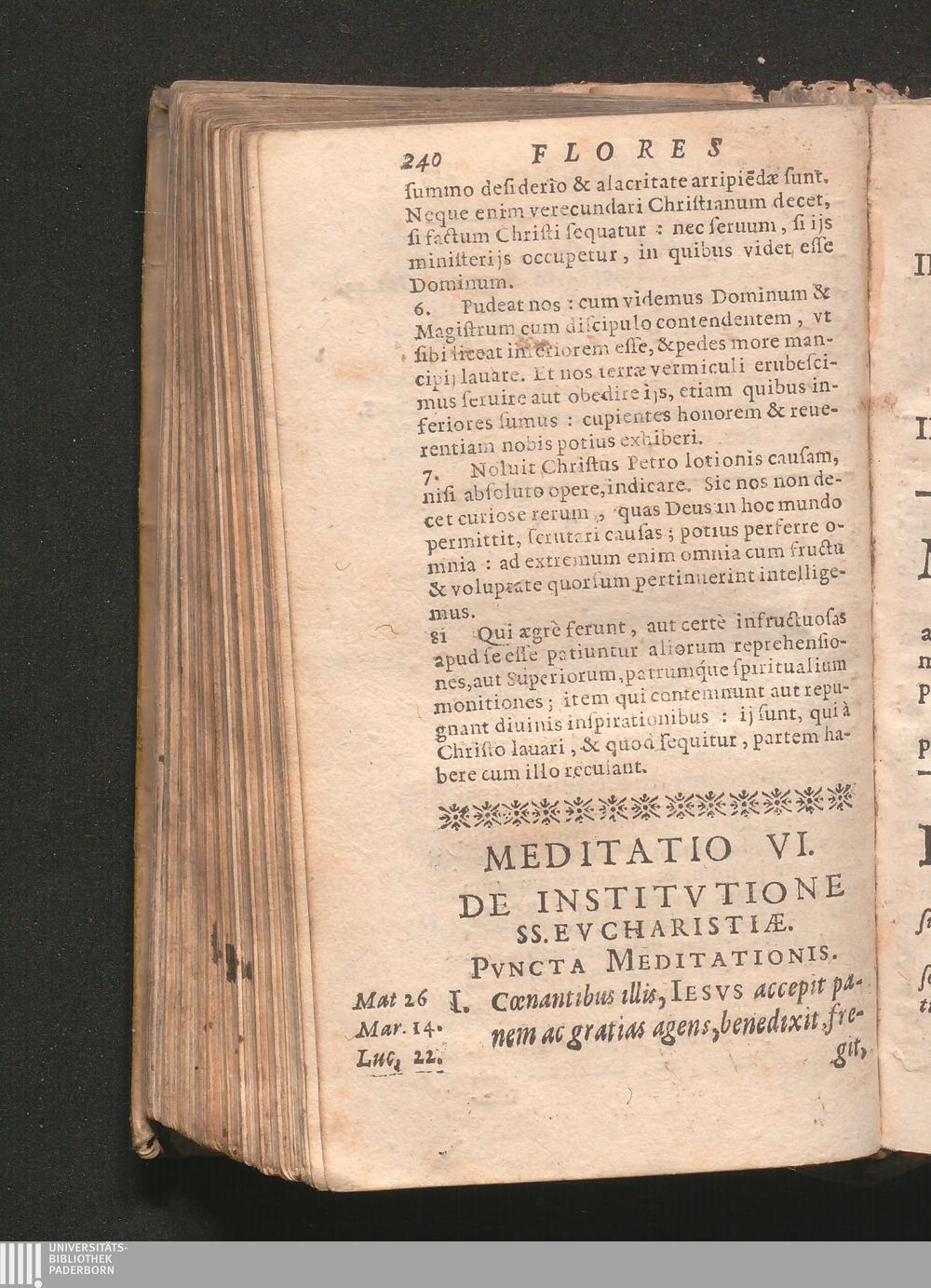 Flores Meditationvm : Ex S. Ignatio, Vincentio Bruno, Ioanne Busaeo, Aliisq[ue] Soc. Iesv PP.bus Decerpti, In quibus continentur Meditationes ; I. De pleris[que] mysteriis vitae Christi. II. De sacratißima eius Paßione. III. De omnibus Dominicis totius anni. IV. De præcipuis festis Sanctorum ... / [Philippus Bebius]