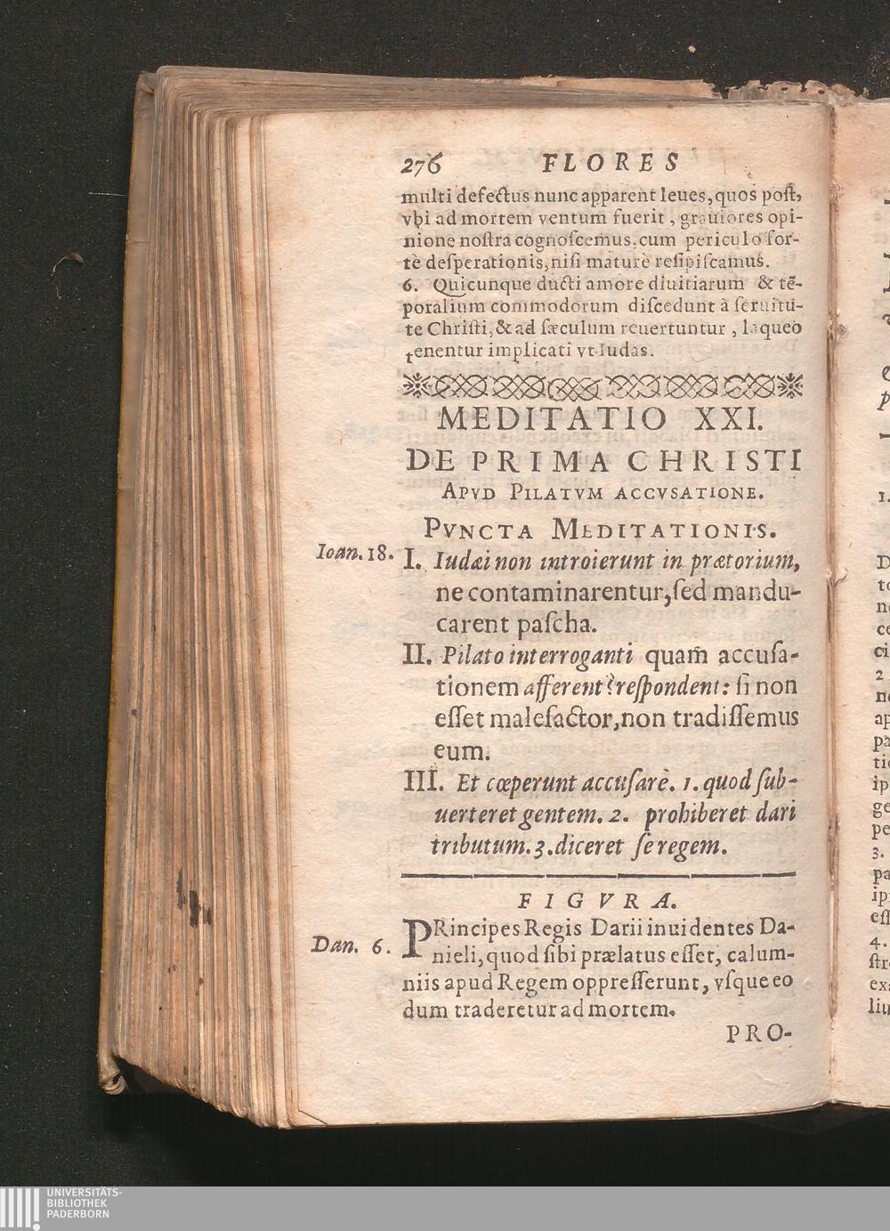 Flores Meditationvm : Ex S. Ignatio, Vincentio Bruno, Ioanne Busaeo, Aliisq[ue] Soc. Iesv PP.bus Decerpti, In quibus continentur Meditationes ; I. De pleris[que] mysteriis vitae Christi. II. De sacratißima eius Paßione. III. De omnibus Dominicis totius anni. IV. De præcipuis festis Sanctorum ... / [Philippus Bebius]