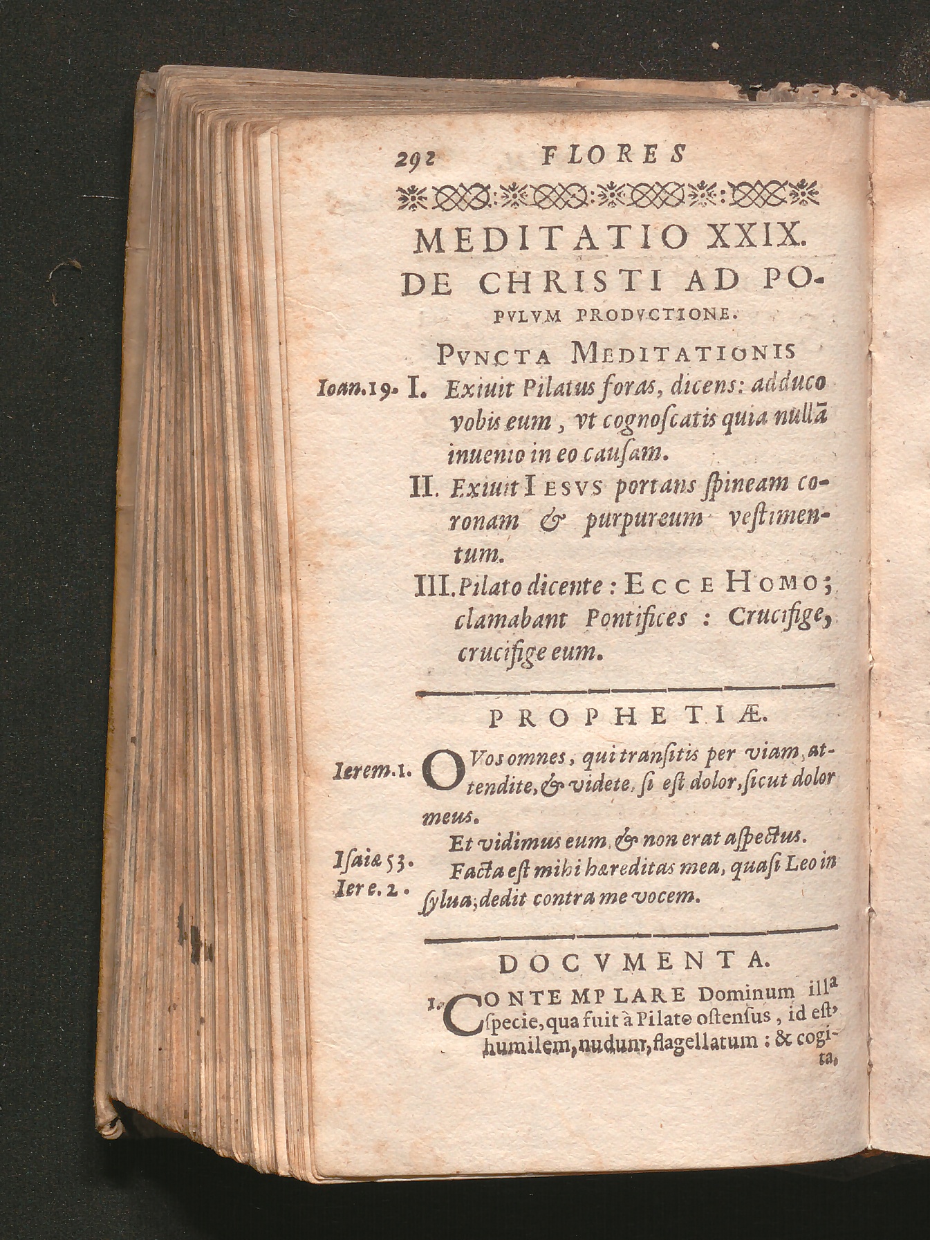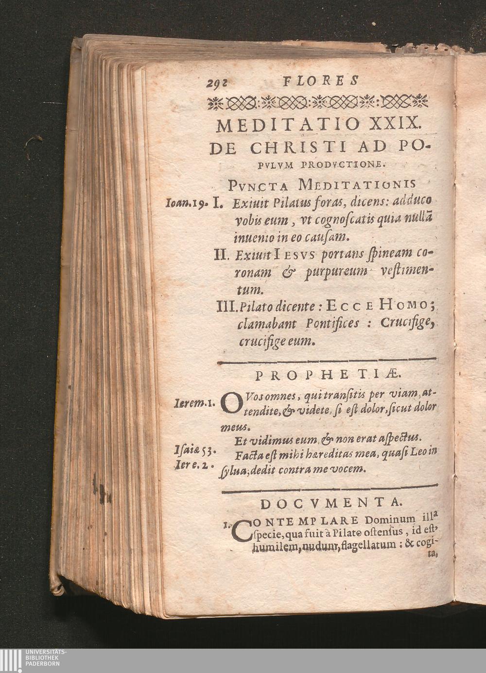 Flores Meditationvm : Ex S. Ignatio, Vincentio Bruno, Ioanne Busaeo, Aliisq[ue] Soc. Iesv PP.bus Decerpti, In quibus continentur Meditationes ; I. De pleris[que] mysteriis vitae Christi. II. De sacratißima eius Paßione. III. De omnibus Dominicis totius anni. IV. De præcipuis festis Sanctorum ... / [Philippus Bebius]
