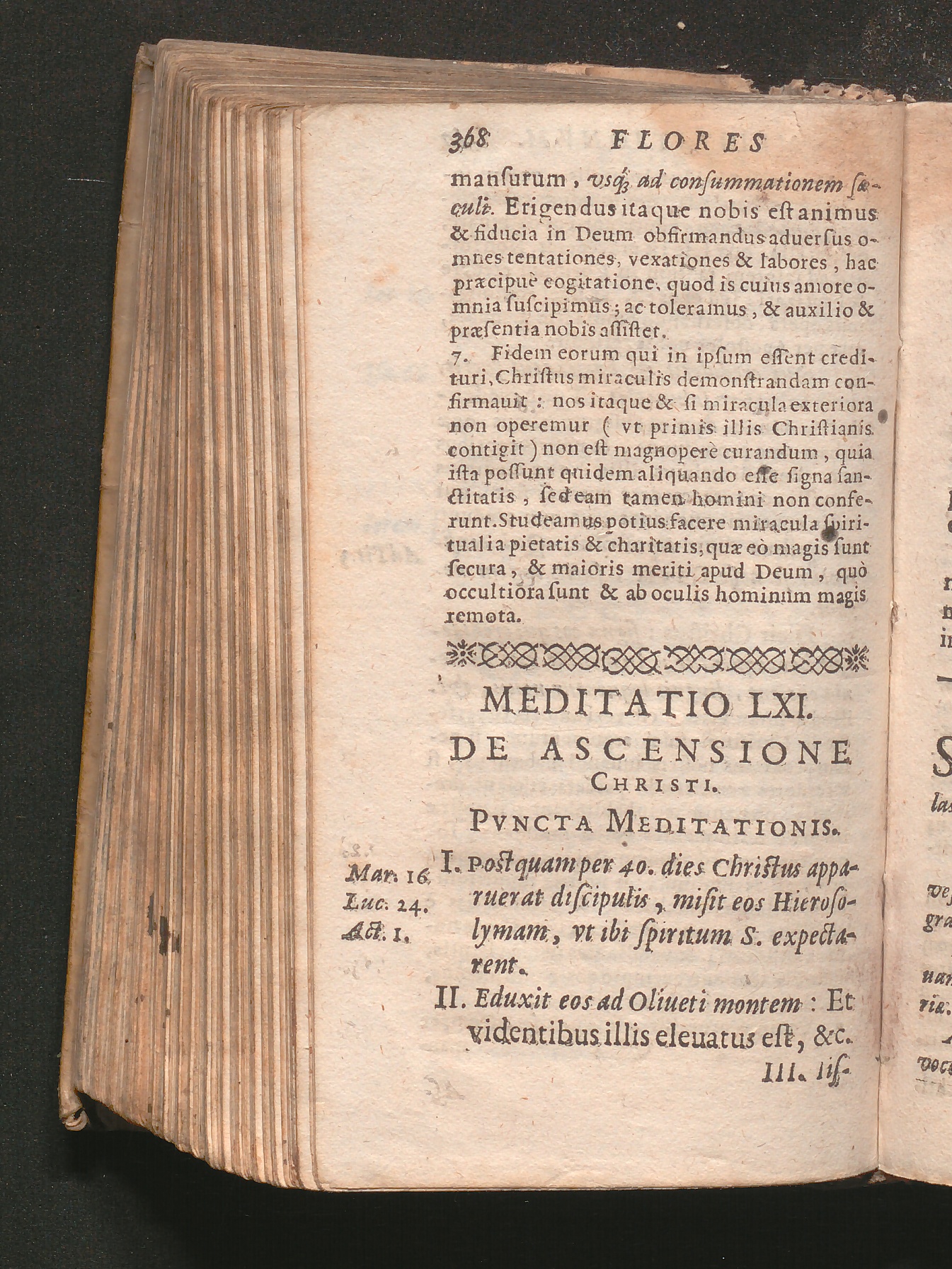 Flores Meditationvm : Ex S. Ignatio, Vincentio Bruno, Ioanne Busaeo, Aliisq[ue] Soc. Iesv PP.bus Decerpti, In quibus continentur Meditationes ; I. De pleris[que] mysteriis vitae Christi. II. De sacratißima eius Paßione. III. De omnibus Dominicis totius anni. IV. De præcipuis festis Sanctorum ... / [Philippus Bebius]
