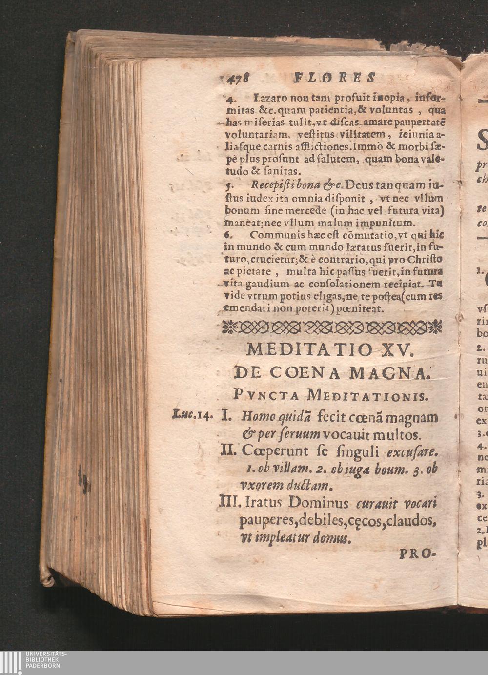 Flores Meditationvm : Ex S. Ignatio, Vincentio Bruno, Ioanne Busaeo, Aliisq[ue] Soc. Iesv PP.bus Decerpti, In quibus continentur Meditationes ; I. De pleris[que] mysteriis vitae Christi. II. De sacratißima eius Paßione. III. De omnibus Dominicis totius anni. IV. De præcipuis festis Sanctorum ... / [Philippus Bebius]