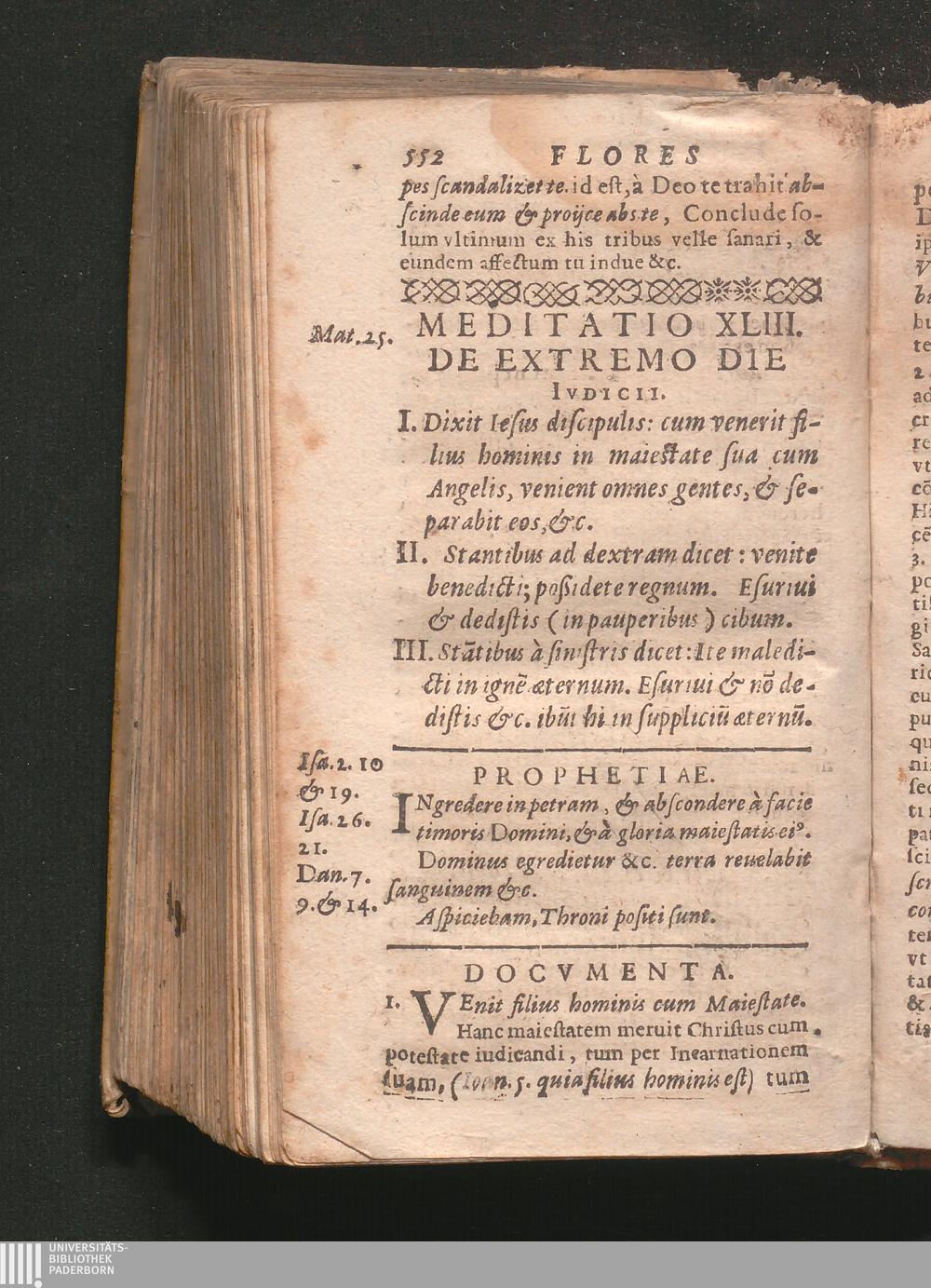 Flores Meditationvm : Ex S. Ignatio, Vincentio Bruno, Ioanne Busaeo, Aliisq[ue] Soc. Iesv PP.bus Decerpti, In quibus continentur Meditationes ; I. De pleris[que] mysteriis vitae Christi. II. De sacratißima eius Paßione. III. De omnibus Dominicis totius anni. IV. De præcipuis festis Sanctorum ... / [Philippus Bebius]