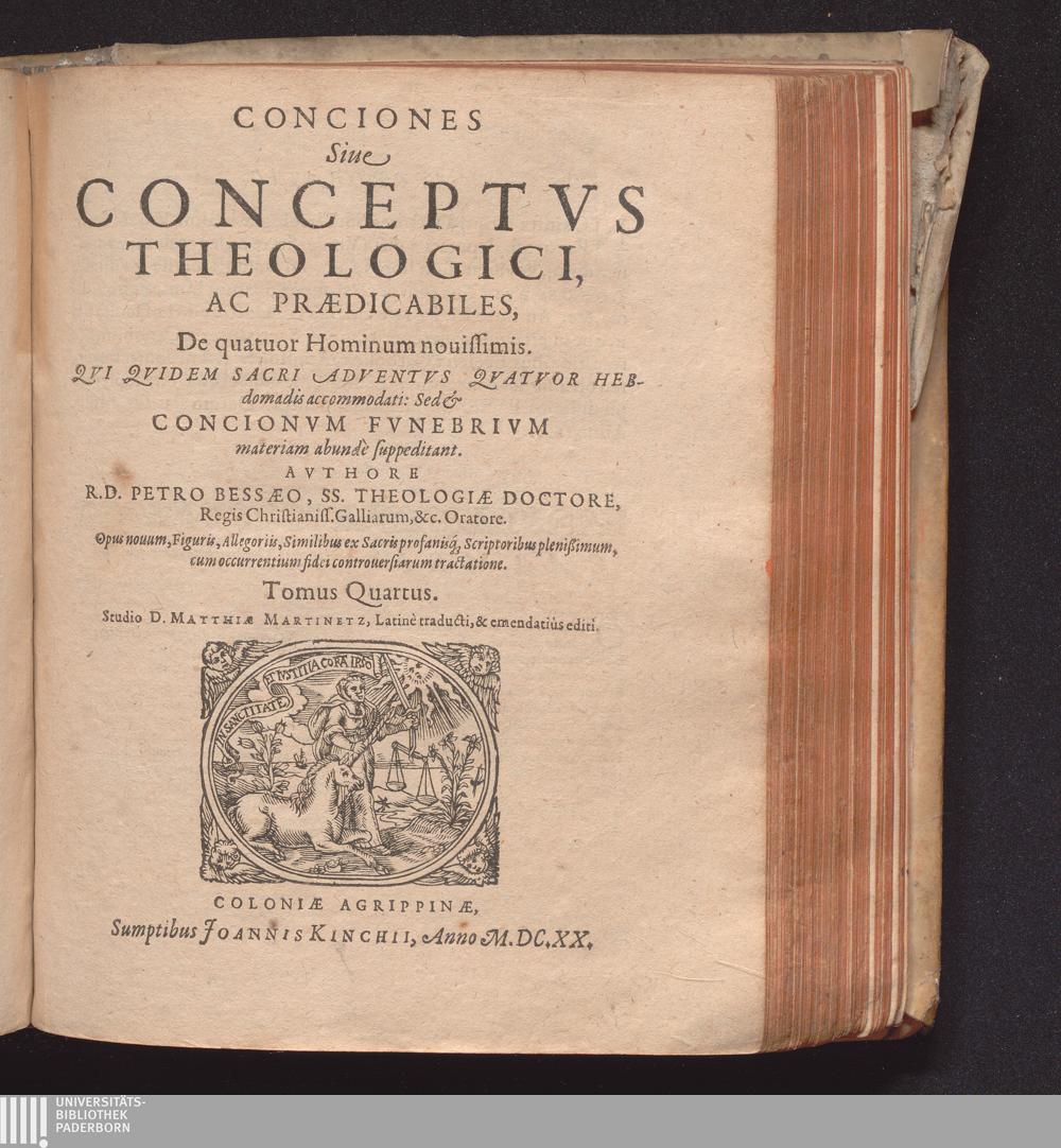 Tomus Quartus (1620) De quatuor Hominum nouissimis : Qvi Qvidem Sacri Adventvs Qvatvor Hebdomadis accommodati: Sed & Concionvm Fvnebrivm materiam abunde suppeditant