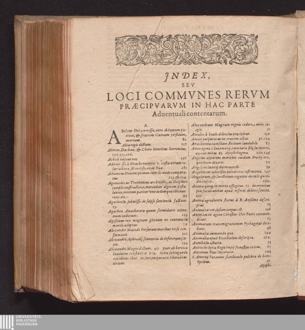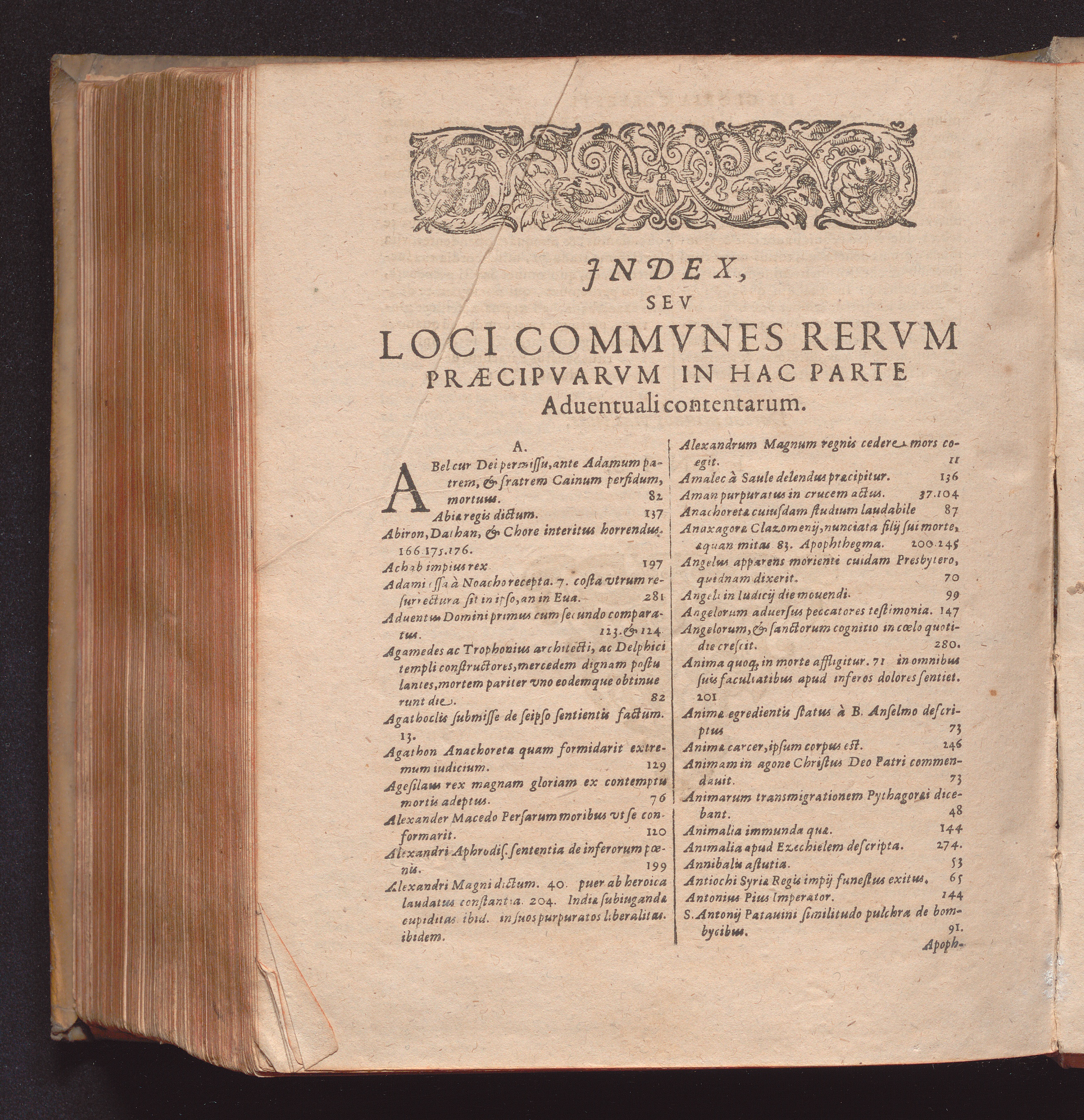 Jndex Sev Loci Commvnes Rervm Præcipvarvm In Hac Parte Aduentali contentarum.
