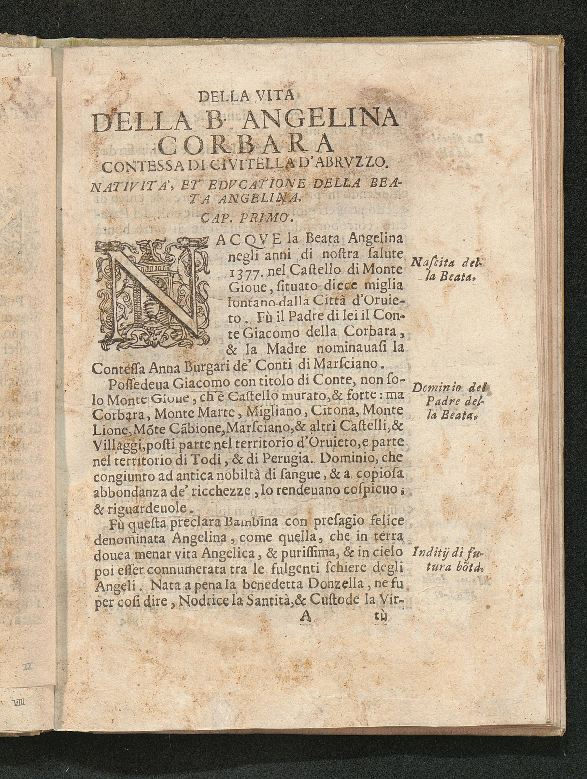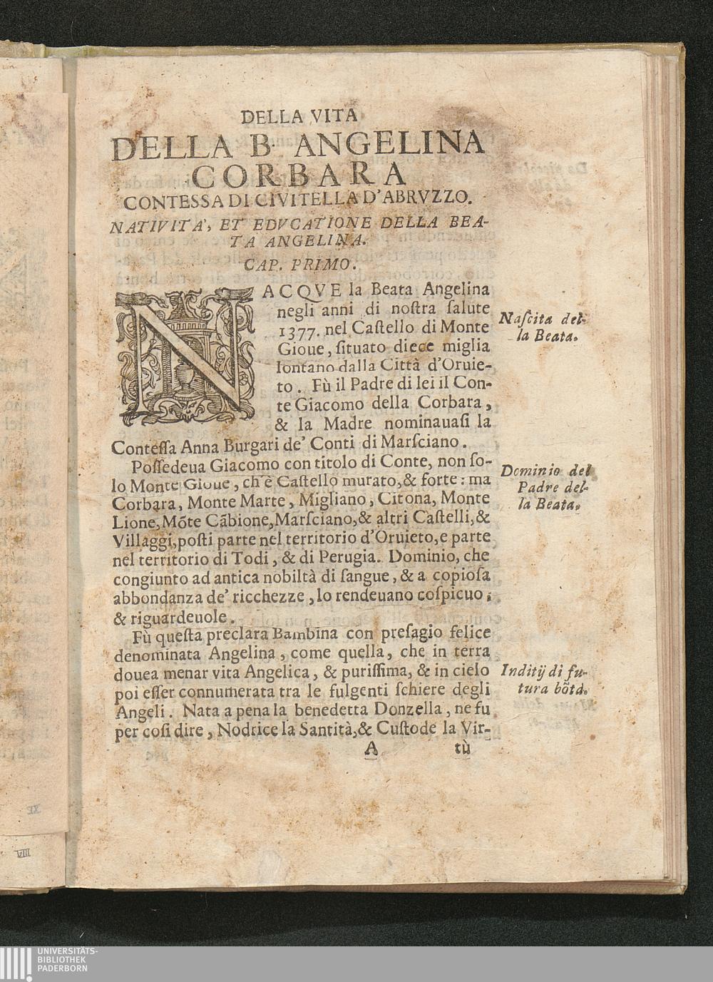Vita Della B. Angelina Corbara Contessa Di Civitella Dell'Abrvzzo, Institutrice delle Monache Claustrali del Terz' Ordine di San Franceso, e Fondatrice in Foligno del Monastero di S. Anna, primo delli sedici, che ella eresse in diuerse Prouincie. / Descritta dal Sig. Lodovico Iacobilli da Foligno