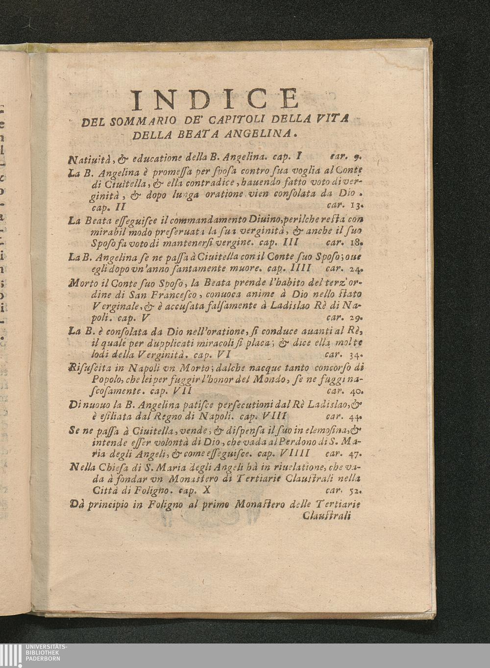 Vita Della B. Angelina Corbara Contessa Di Civitella Dell'Abrvzzo, Institutrice delle Monache Claustrali del Terz' Ordine di San Franceso, e Fondatrice in Foligno del Monastero di S. Anna, primo delli sedici, che ella eresse in diuerse Prouincie. / Descritta dal Sig. Lodovico Iacobilli da Foligno