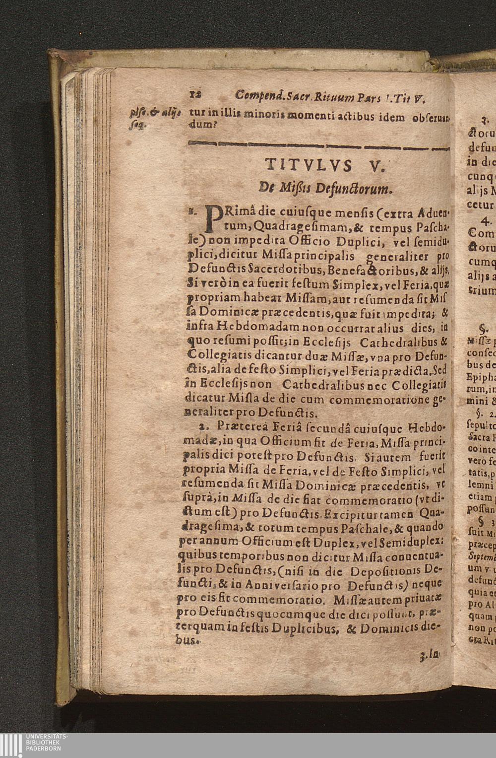 Compendium Sacrorvm Ritvvm Et Caeremoniarvm : Quae In Missis Qua Privatis, Qva Solennibus, Nec Non Pontificialibus, Et quibuscunque alijs Ecclesiasticis functionibus, ex Rubricarum Missalis Romani, Caeremonialis Episcoporum praescripto, Bartholomaei Gavanti, aliorumque probatissimorum Auctorum expositione seruari debent. Omnibvs Cvivscvmqve Ordinis Et gradus Ecclesiasticis personis non minùs vtile quàm necessarium. / Operâ & studio R. D. Gerlaci Vinitoris Basilicae S. Vrsulae Coloniensis Vicarij