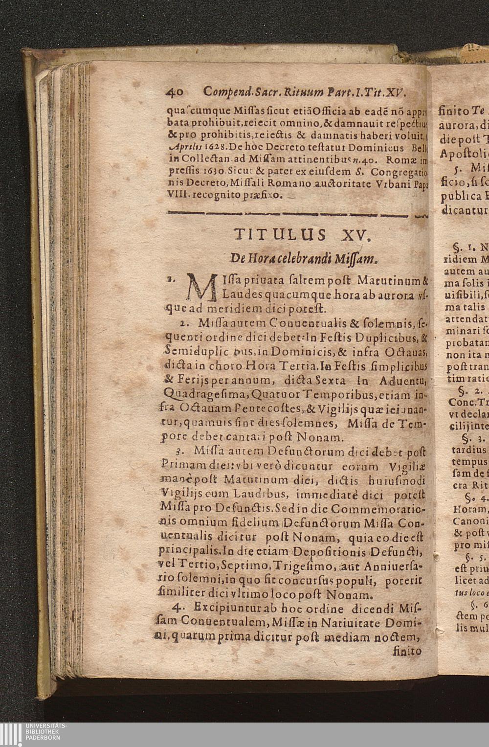 Compendium Sacrorvm Ritvvm Et Caeremoniarvm : Quae In Missis Qua Privatis, Qva Solennibus, Nec Non Pontificialibus, Et quibuscunque alijs Ecclesiasticis functionibus, ex Rubricarum Missalis Romani, Caeremonialis Episcoporum praescripto, Bartholomaei Gavanti, aliorumque probatissimorum Auctorum expositione seruari debent. Omnibvs Cvivscvmqve Ordinis Et gradus Ecclesiasticis personis non minùs vtile quàm necessarium. / Operâ & studio R. D. Gerlaci Vinitoris Basilicae S. Vrsulae Coloniensis Vicarij