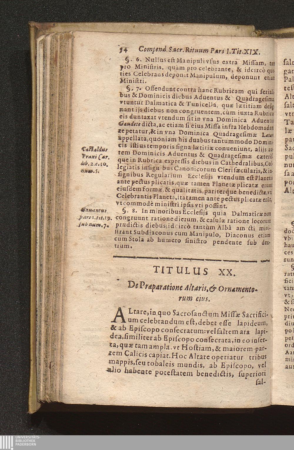 Compendium Sacrorvm Ritvvm Et Caeremoniarvm : Quae In Missis Qua Privatis, Qva Solennibus, Nec Non Pontificialibus, Et quibuscunque alijs Ecclesiasticis functionibus, ex Rubricarum Missalis Romani, Caeremonialis Episcoporum praescripto, Bartholomaei Gavanti, aliorumque probatissimorum Auctorum expositione seruari debent. Omnibvs Cvivscvmqve Ordinis Et gradus Ecclesiasticis personis non minùs vtile quàm necessarium. / Operâ & studio R. D. Gerlaci Vinitoris Basilicae S. Vrsulae Coloniensis Vicarij