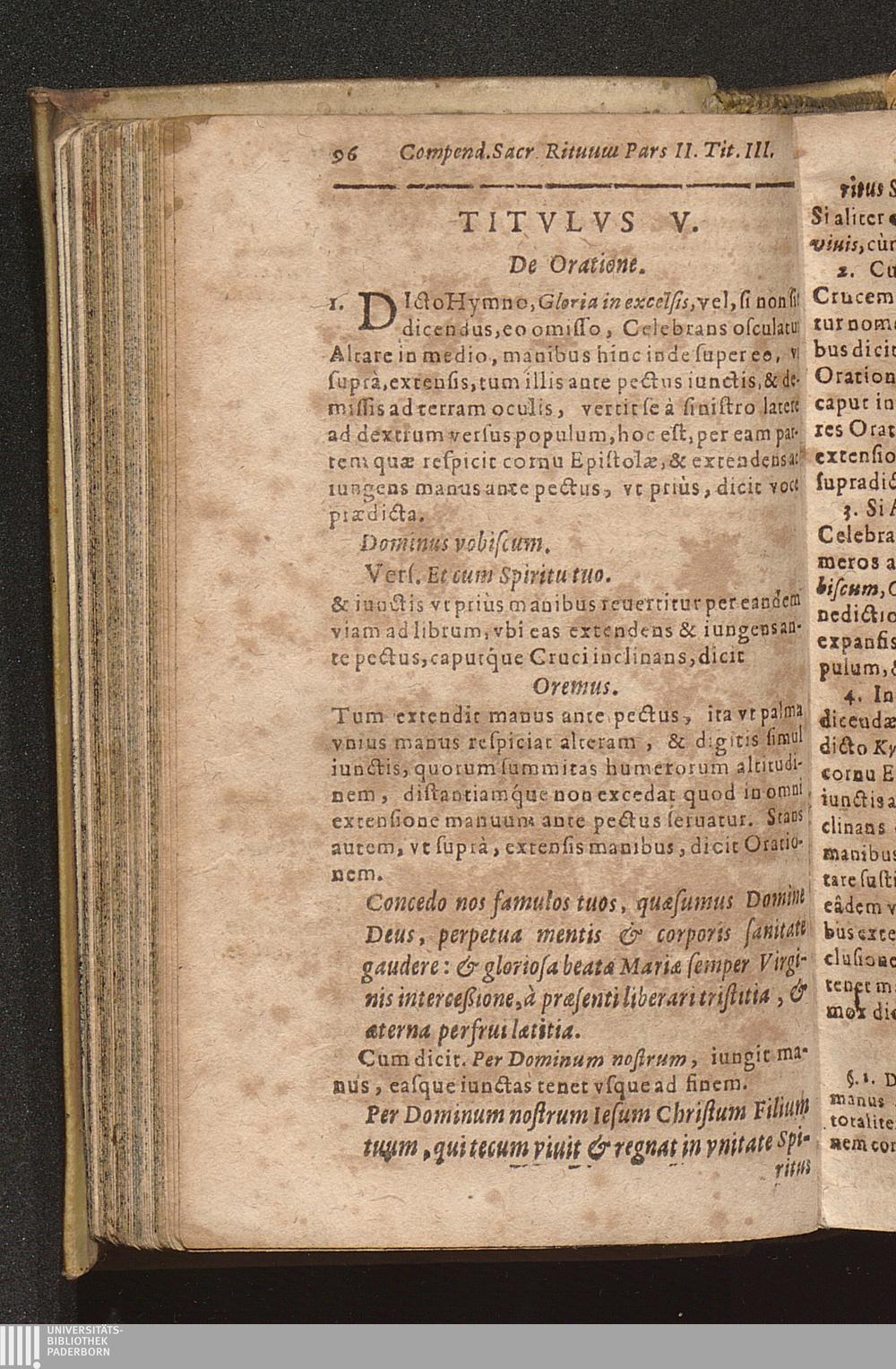 Compendium Sacrorvm Ritvvm Et Caeremoniarvm : Quae In Missis Qua Privatis, Qva Solennibus, Nec Non Pontificialibus, Et quibuscunque alijs Ecclesiasticis functionibus, ex Rubricarum Missalis Romani, Caeremonialis Episcoporum praescripto, Bartholomaei Gavanti, aliorumque probatissimorum Auctorum expositione seruari debent. Omnibvs Cvivscvmqve Ordinis Et gradus Ecclesiasticis personis non minùs vtile quàm necessarium. / Operâ & studio R. D. Gerlaci Vinitoris Basilicae S. Vrsulae Coloniensis Vicarij