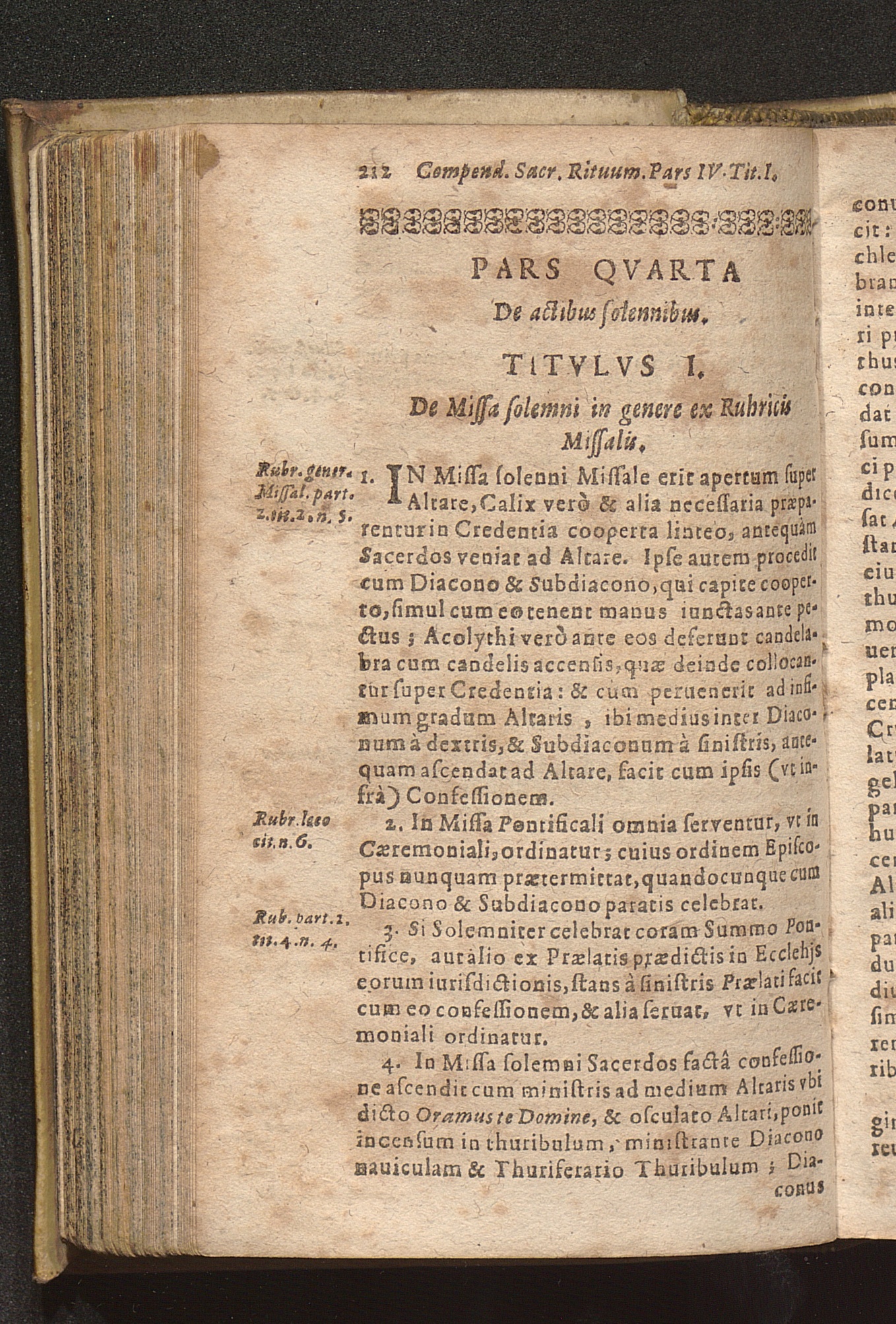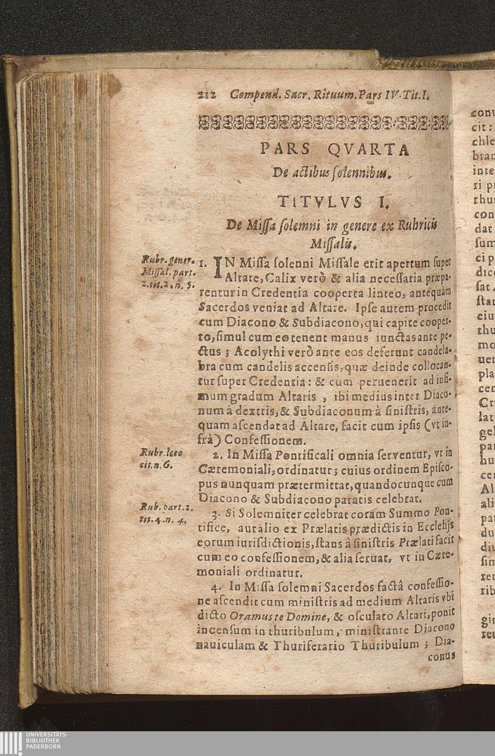 Compendium Sacrorvm Ritvvm Et Caeremoniarvm : Quae In Missis Qua Privatis, Qva Solennibus, Nec Non Pontificialibus, Et quibuscunque alijs Ecclesiasticis functionibus, ex Rubricarum Missalis Romani, Caeremonialis Episcoporum praescripto, Bartholomaei Gavanti, aliorumque probatissimorum Auctorum expositione seruari debent. Omnibvs Cvivscvmqve Ordinis Et gradus Ecclesiasticis personis non minùs vtile quàm necessarium. / Operâ & studio R. D. Gerlaci Vinitoris Basilicae S. Vrsulae Coloniensis Vicarij