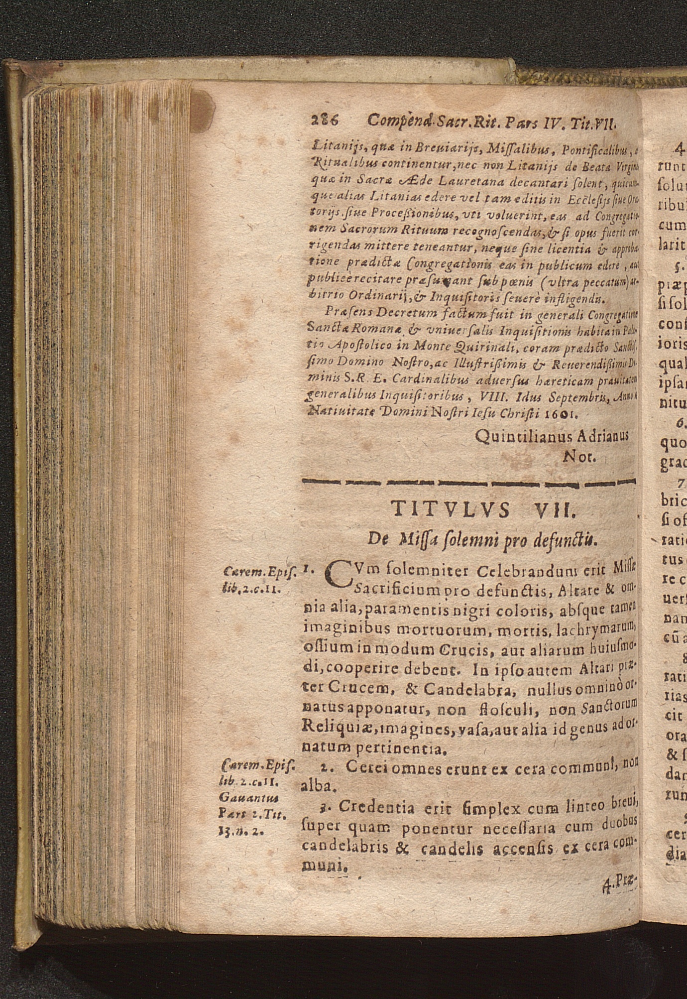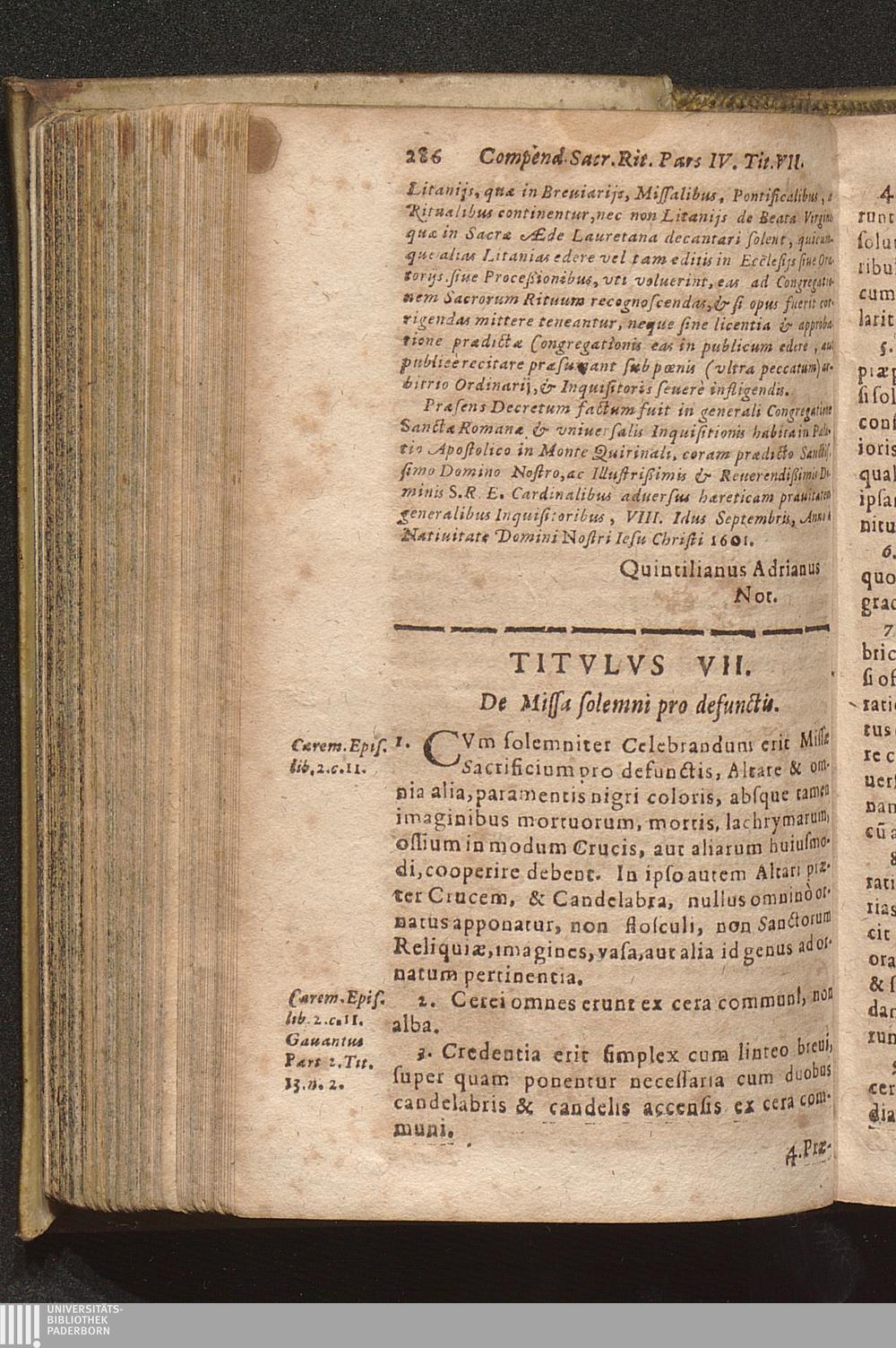 Compendium Sacrorvm Ritvvm Et Caeremoniarvm : Quae In Missis Qua Privatis, Qva Solennibus, Nec Non Pontificialibus, Et quibuscunque alijs Ecclesiasticis functionibus, ex Rubricarum Missalis Romani, Caeremonialis Episcoporum praescripto, Bartholomaei Gavanti, aliorumque probatissimorum Auctorum expositione seruari debent. Omnibvs Cvivscvmqve Ordinis Et gradus Ecclesiasticis personis non minùs vtile quàm necessarium. / Operâ & studio R. D. Gerlaci Vinitoris Basilicae S. Vrsulae Coloniensis Vicarij