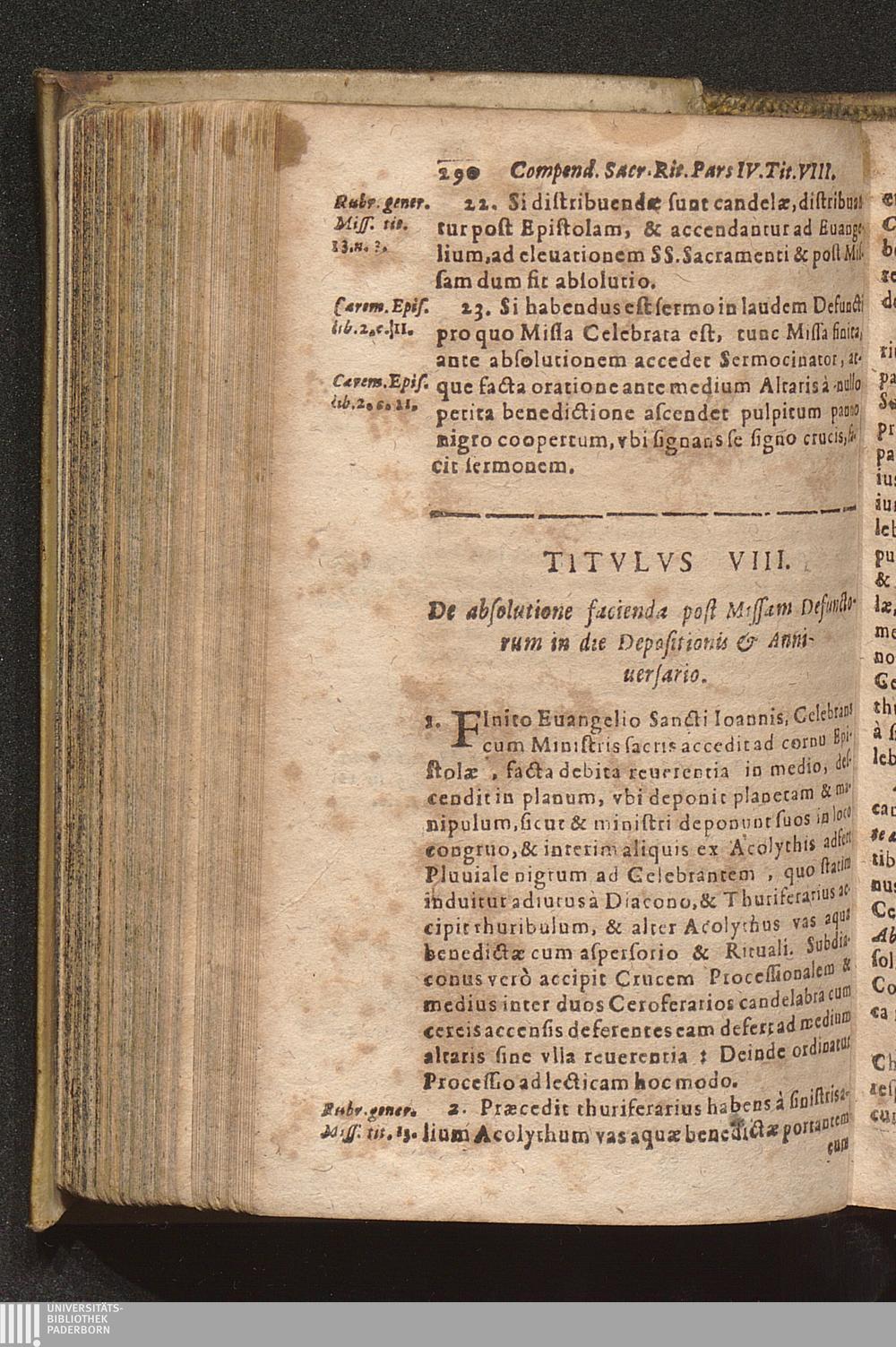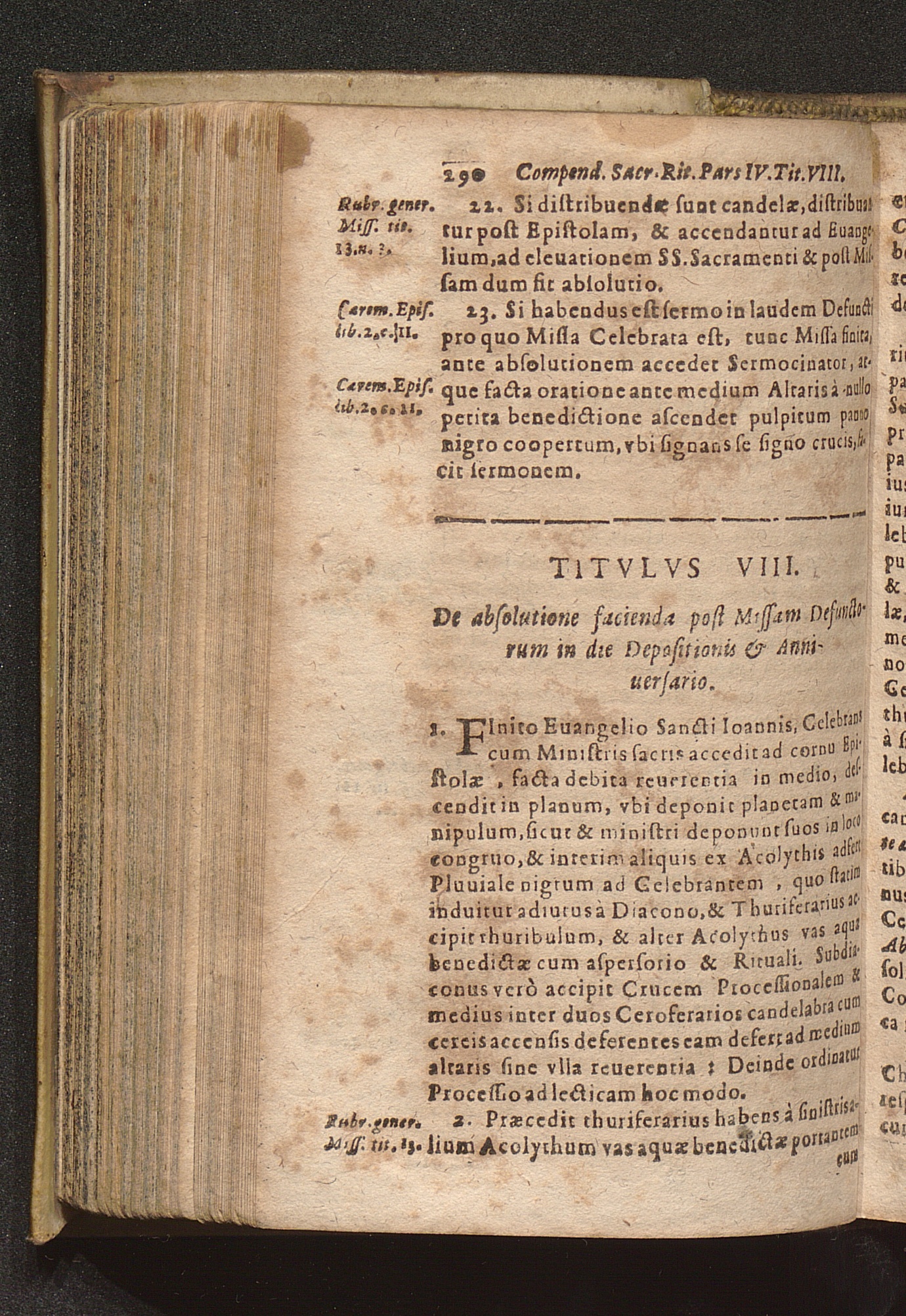 Compendium Sacrorvm Ritvvm Et Caeremoniarvm : Quae In Missis Qua Privatis, Qva Solennibus, Nec Non Pontificialibus, Et quibuscunque alijs Ecclesiasticis functionibus, ex Rubricarum Missalis Romani, Caeremonialis Episcoporum praescripto, Bartholomaei Gavanti, aliorumque probatissimorum Auctorum expositione seruari debent. Omnibvs Cvivscvmqve Ordinis Et gradus Ecclesiasticis personis non minùs vtile quàm necessarium. / Operâ & studio R. D. Gerlaci Vinitoris Basilicae S. Vrsulae Coloniensis Vicarij