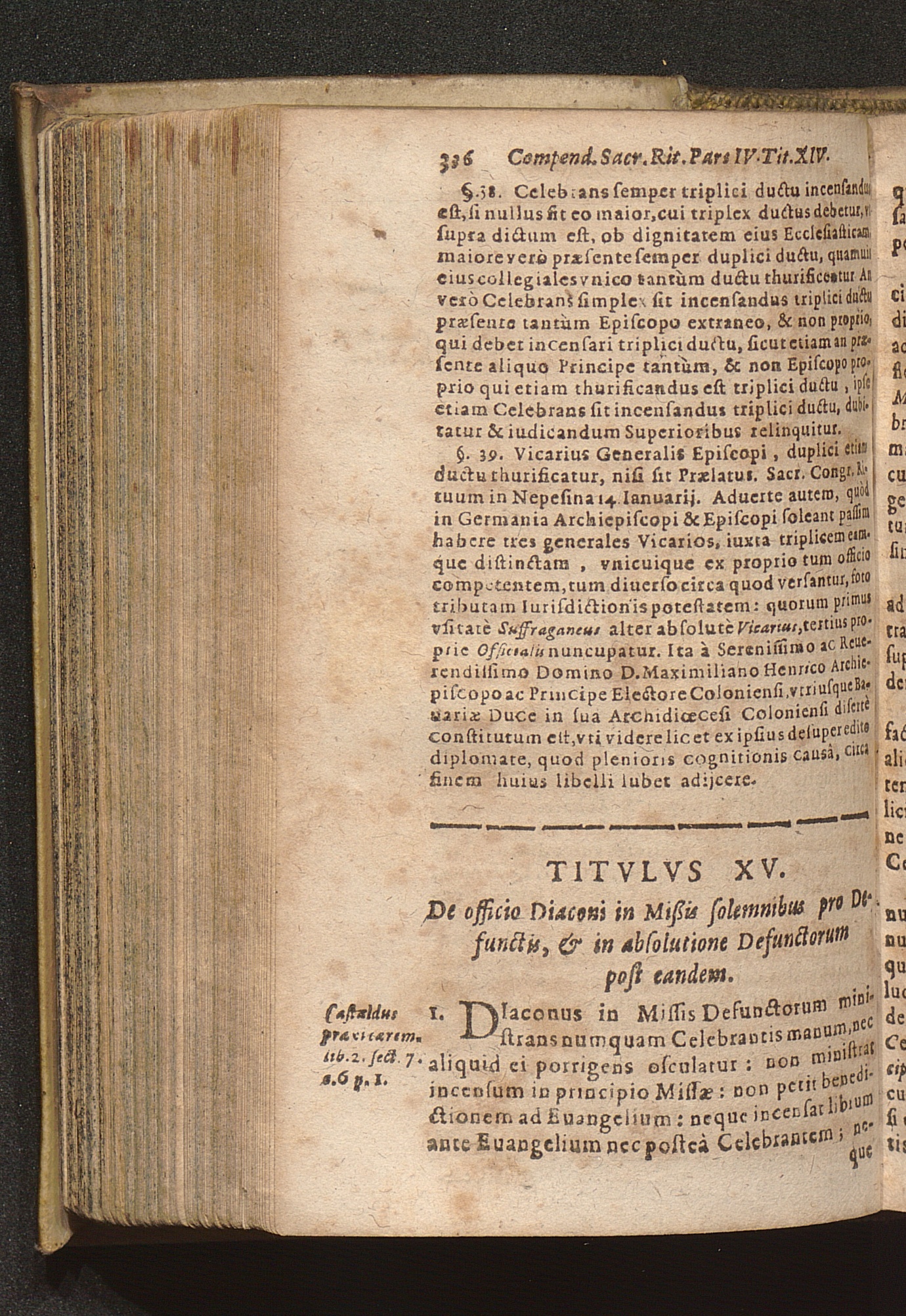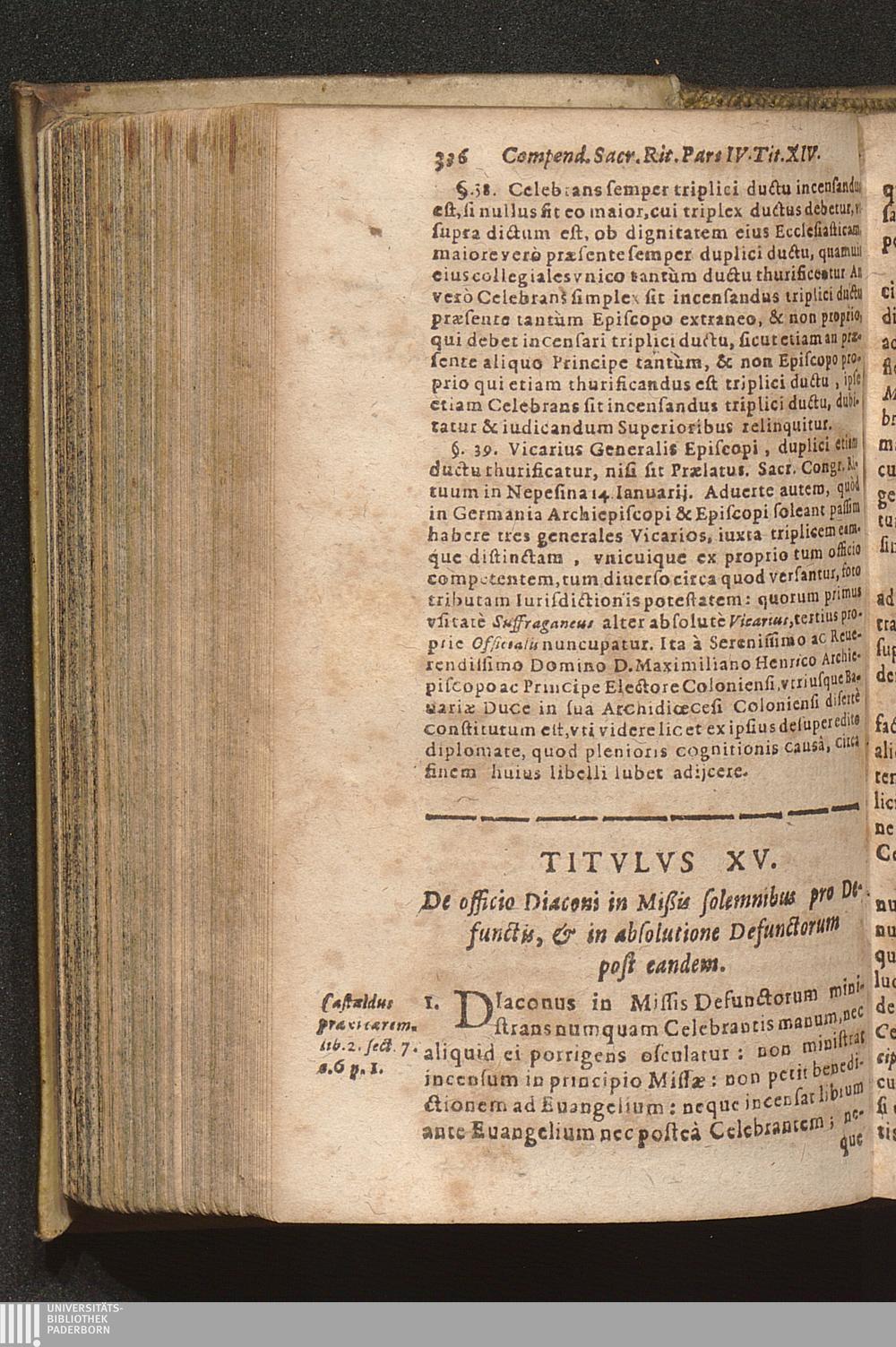 Compendium Sacrorvm Ritvvm Et Caeremoniarvm : Quae In Missis Qua Privatis, Qva Solennibus, Nec Non Pontificialibus, Et quibuscunque alijs Ecclesiasticis functionibus, ex Rubricarum Missalis Romani, Caeremonialis Episcoporum praescripto, Bartholomaei Gavanti, aliorumque probatissimorum Auctorum expositione seruari debent. Omnibvs Cvivscvmqve Ordinis Et gradus Ecclesiasticis personis non minùs vtile quàm necessarium. / Operâ & studio R. D. Gerlaci Vinitoris Basilicae S. Vrsulae Coloniensis Vicarij