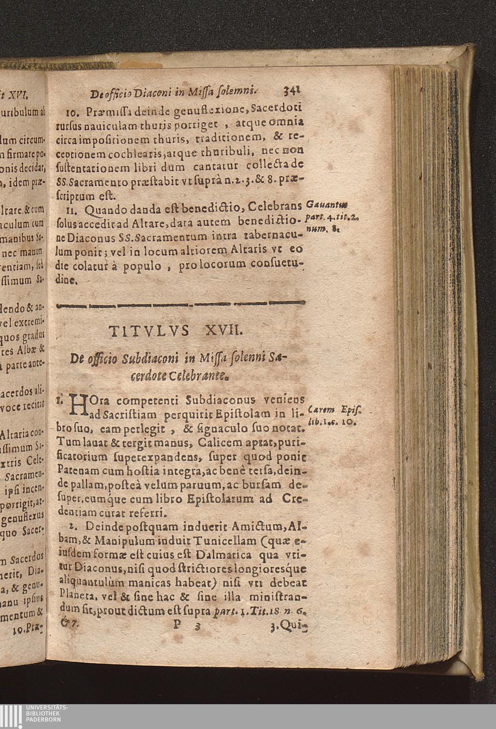 Compendium Sacrorvm Ritvvm Et Caeremoniarvm : Quae In Missis Qua Privatis, Qva Solennibus, Nec Non Pontificialibus, Et quibuscunque alijs Ecclesiasticis functionibus, ex Rubricarum Missalis Romani, Caeremonialis Episcoporum praescripto, Bartholomaei Gavanti, aliorumque probatissimorum Auctorum expositione seruari debent. Omnibvs Cvivscvmqve Ordinis Et gradus Ecclesiasticis personis non minùs vtile quàm necessarium. / Operâ & studio R. D. Gerlaci Vinitoris Basilicae S. Vrsulae Coloniensis Vicarij
