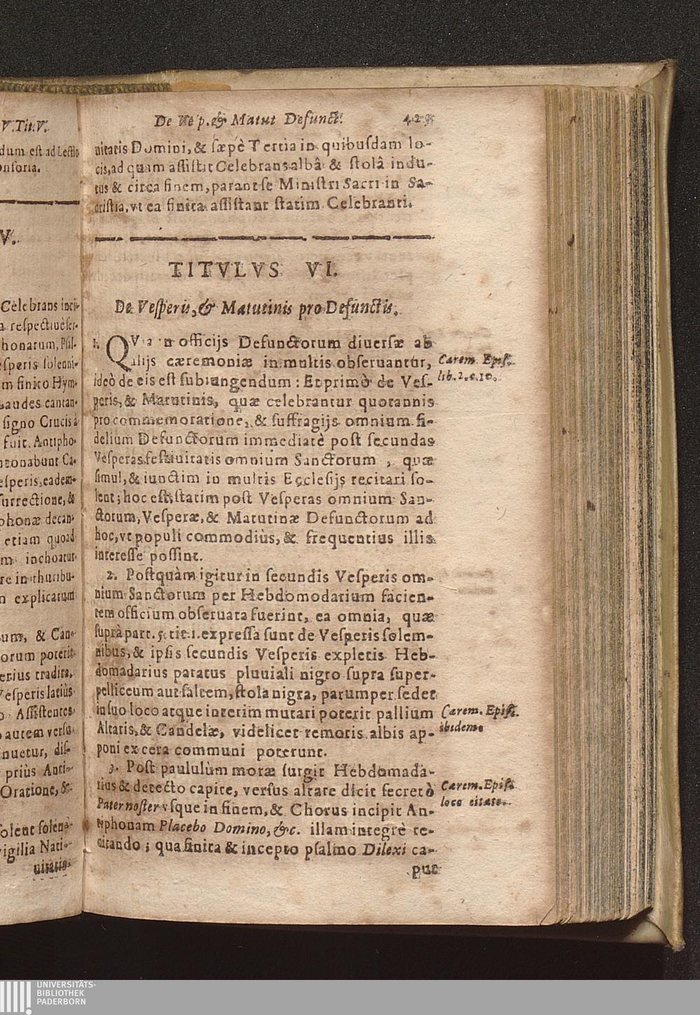 Compendium Sacrorvm Ritvvm Et Caeremoniarvm : Quae In Missis Qua Privatis, Qva Solennibus, Nec Non Pontificialibus, Et quibuscunque alijs Ecclesiasticis functionibus, ex Rubricarum Missalis Romani, Caeremonialis Episcoporum praescripto, Bartholomaei Gavanti, aliorumque probatissimorum Auctorum expositione seruari debent. Omnibvs Cvivscvmqve Ordinis Et gradus Ecclesiasticis personis non minùs vtile quàm necessarium. / Operâ & studio R. D. Gerlaci Vinitoris Basilicae S. Vrsulae Coloniensis Vicarij