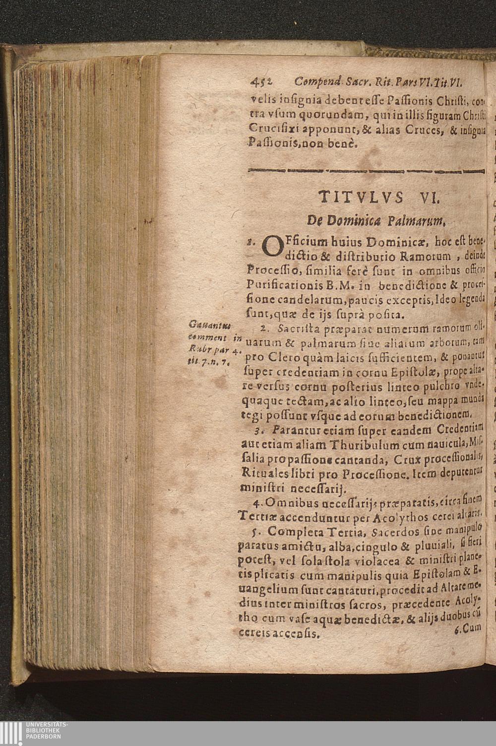 Compendium Sacrorvm Ritvvm Et Caeremoniarvm : Quae In Missis Qua Privatis, Qva Solennibus, Nec Non Pontificialibus, Et quibuscunque alijs Ecclesiasticis functionibus, ex Rubricarum Missalis Romani, Caeremonialis Episcoporum praescripto, Bartholomaei Gavanti, aliorumque probatissimorum Auctorum expositione seruari debent. Omnibvs Cvivscvmqve Ordinis Et gradus Ecclesiasticis personis non minùs vtile quàm necessarium. / Operâ & studio R. D. Gerlaci Vinitoris Basilicae S. Vrsulae Coloniensis Vicarij