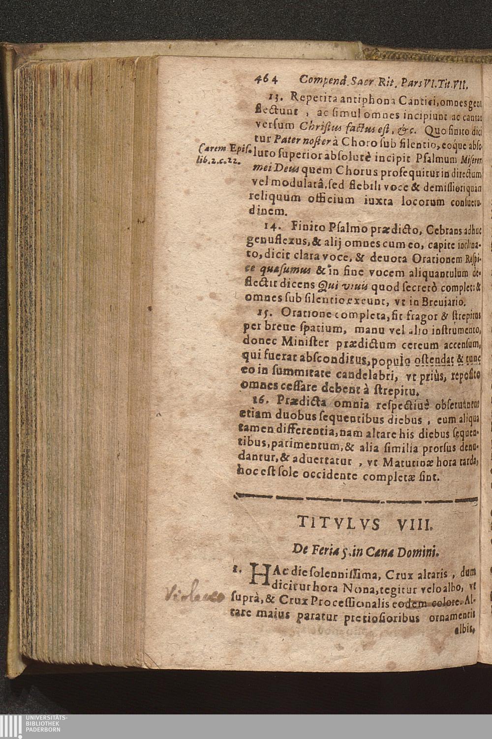 Compendium Sacrorvm Ritvvm Et Caeremoniarvm : Quae In Missis Qua Privatis, Qva Solennibus, Nec Non Pontificialibus, Et quibuscunque alijs Ecclesiasticis functionibus, ex Rubricarum Missalis Romani, Caeremonialis Episcoporum praescripto, Bartholomaei Gavanti, aliorumque probatissimorum Auctorum expositione seruari debent. Omnibvs Cvivscvmqve Ordinis Et gradus Ecclesiasticis personis non minùs vtile quàm necessarium. / Operâ & studio R. D. Gerlaci Vinitoris Basilicae S. Vrsulae Coloniensis Vicarij