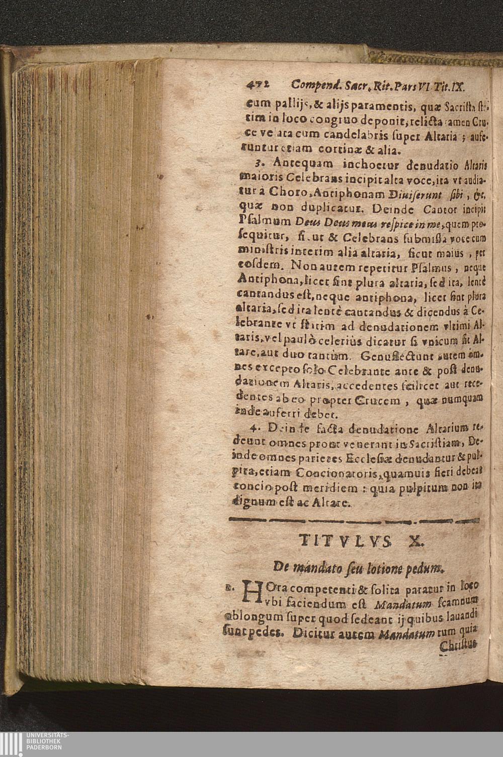 Compendium Sacrorvm Ritvvm Et Caeremoniarvm : Quae In Missis Qua Privatis, Qva Solennibus, Nec Non Pontificialibus, Et quibuscunque alijs Ecclesiasticis functionibus, ex Rubricarum Missalis Romani, Caeremonialis Episcoporum praescripto, Bartholomaei Gavanti, aliorumque probatissimorum Auctorum expositione seruari debent. Omnibvs Cvivscvmqve Ordinis Et gradus Ecclesiasticis personis non minùs vtile quàm necessarium. / Operâ & studio R. D. Gerlaci Vinitoris Basilicae S. Vrsulae Coloniensis Vicarij