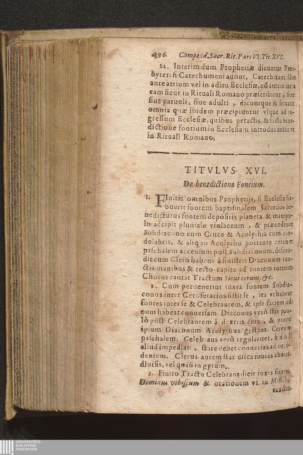 Compendium Sacrorvm Ritvvm Et Caeremoniarvm : Quae In Missis Qua Privatis, Qva Solennibus, Nec Non Pontificialibus, Et quibuscunque alijs Ecclesiasticis functionibus, ex Rubricarum Missalis Romani, Caeremonialis Episcoporum praescripto, Bartholomaei Gavanti, aliorumque probatissimorum Auctorum expositione seruari debent. Omnibvs Cvivscvmqve Ordinis Et gradus Ecclesiasticis personis non minùs vtile quàm necessarium. / Operâ & studio R. D. Gerlaci Vinitoris Basilicae S. Vrsulae Coloniensis Vicarij
