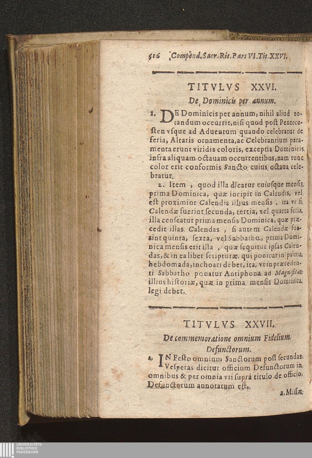 Compendium Sacrorvm Ritvvm Et Caeremoniarvm : Quae In Missis Qua Privatis, Qva Solennibus, Nec Non Pontificialibus, Et quibuscunque alijs Ecclesiasticis functionibus, ex Rubricarum Missalis Romani, Caeremonialis Episcoporum praescripto, Bartholomaei Gavanti, aliorumque probatissimorum Auctorum expositione seruari debent. Omnibvs Cvivscvmqve Ordinis Et gradus Ecclesiasticis personis non minùs vtile quàm necessarium. / Operâ & studio R. D. Gerlaci Vinitoris Basilicae S. Vrsulae Coloniensis Vicarij