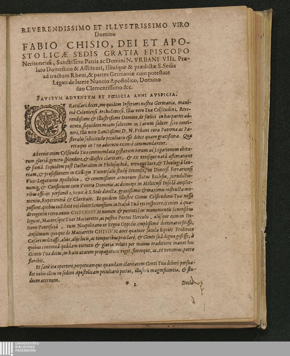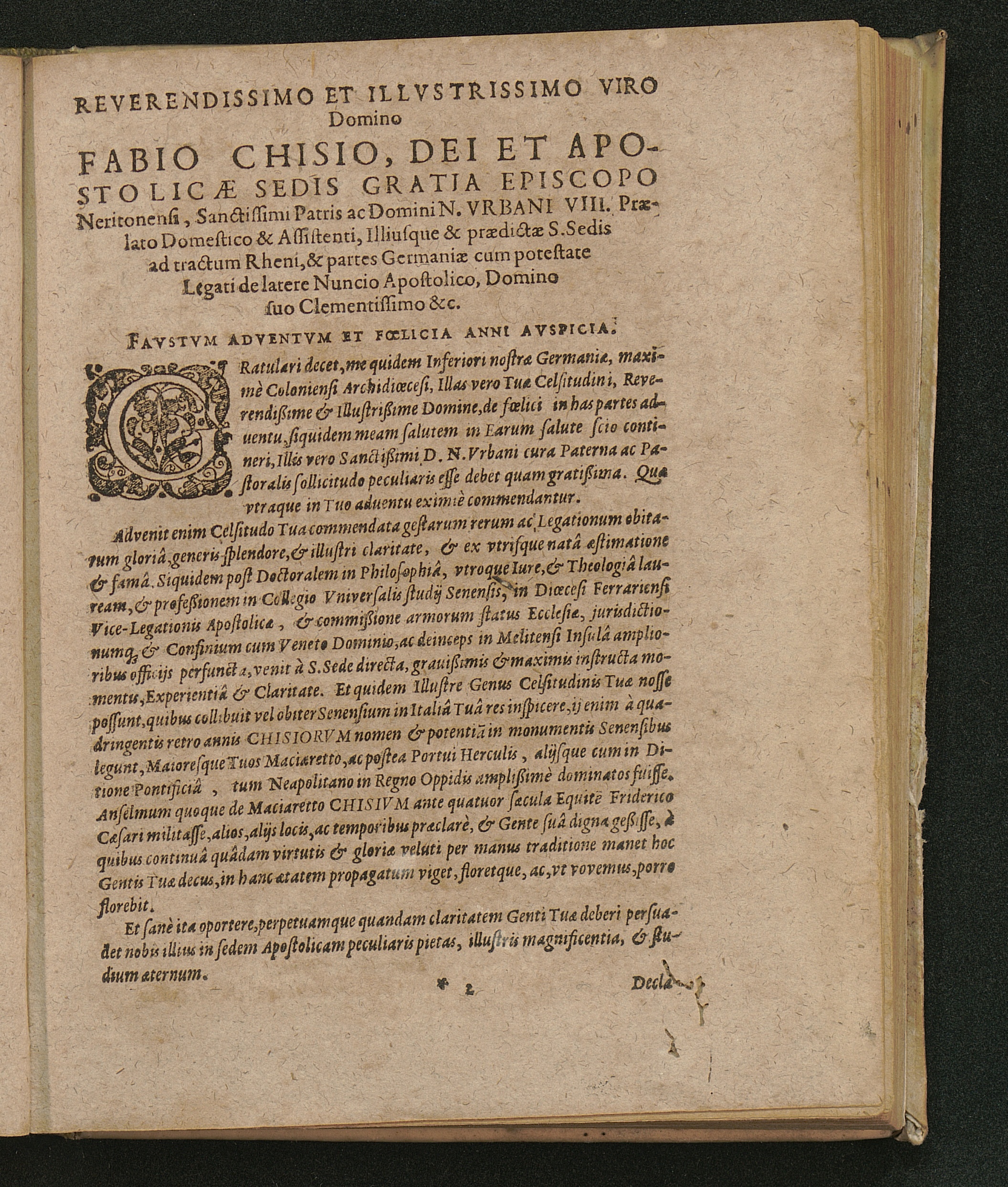 Reverendissimo et Illvstrissimo Viro Domino Fabio Chisio, ...