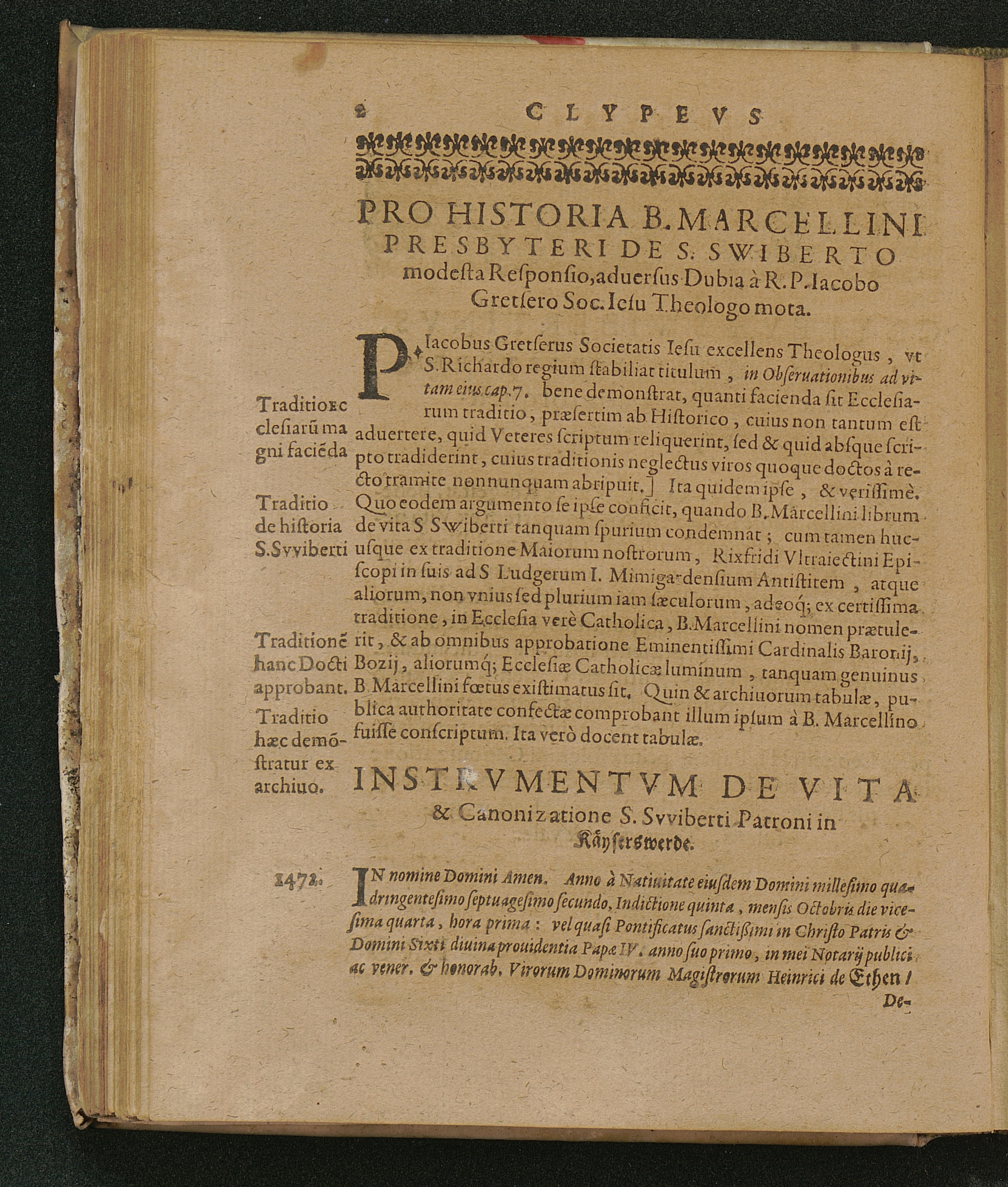 Pro Historia B. Marcellini Presbyteri De S. Swiberto modesta Responsio, aduersus Dubia à R. P. Iacobo Gretsero Soc. Iesu Theologo mota.
