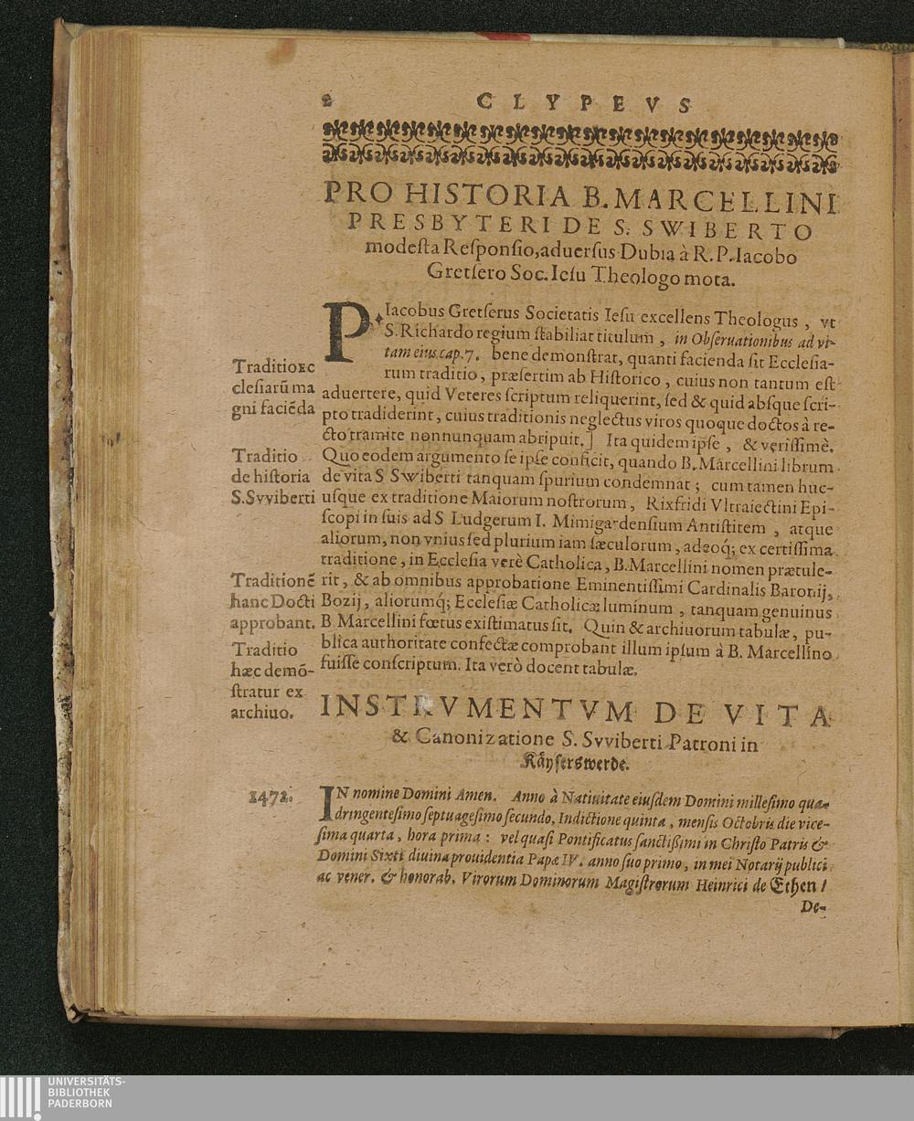 Instrvmentvm De Vita & Canonizatione S. Svviberti Patroni in Käyserswerde.