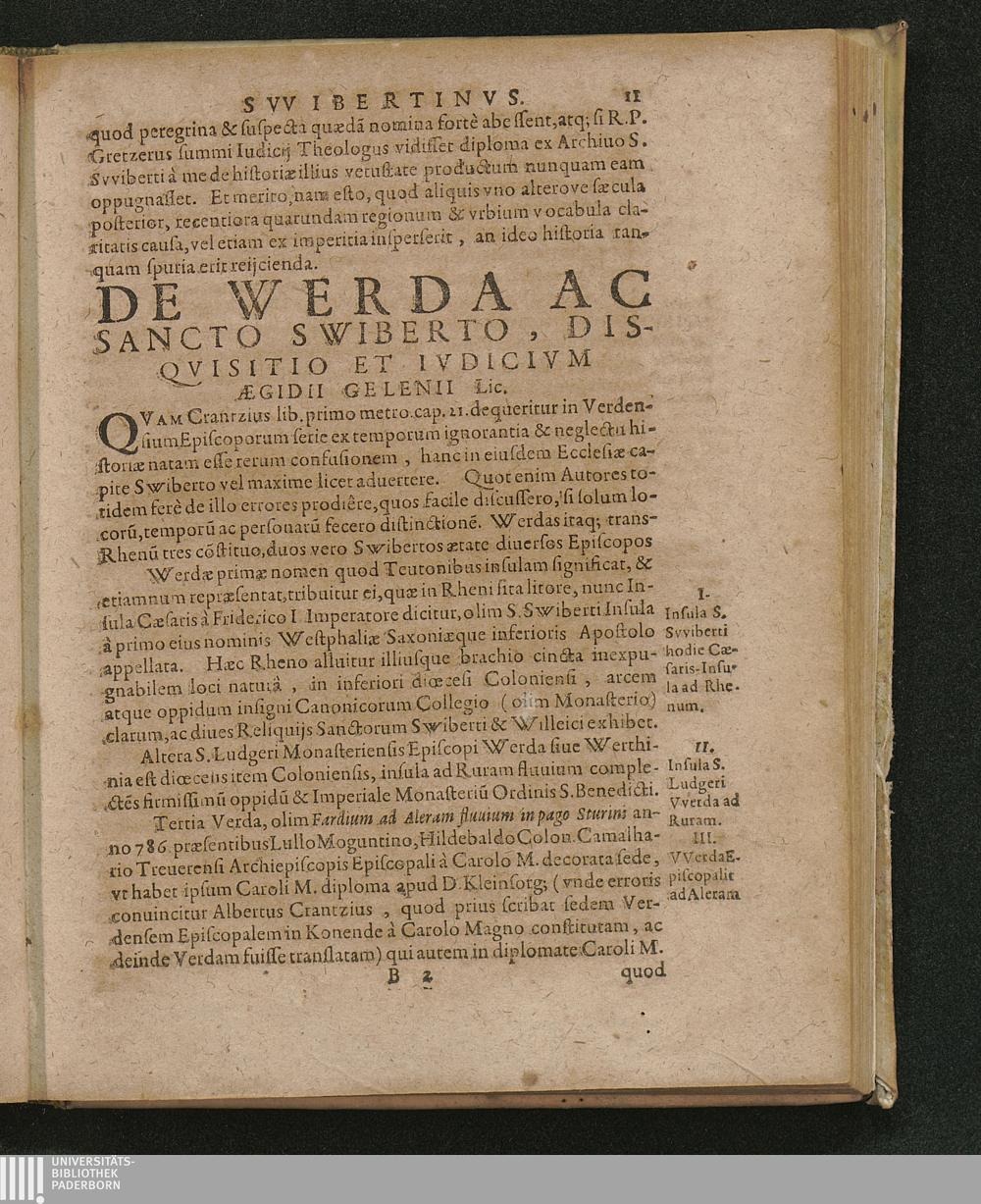 De Werda Ac Sancto Swiberto, Disqvisitio Et Ivdicivm Aegidii Gelenii Lic.