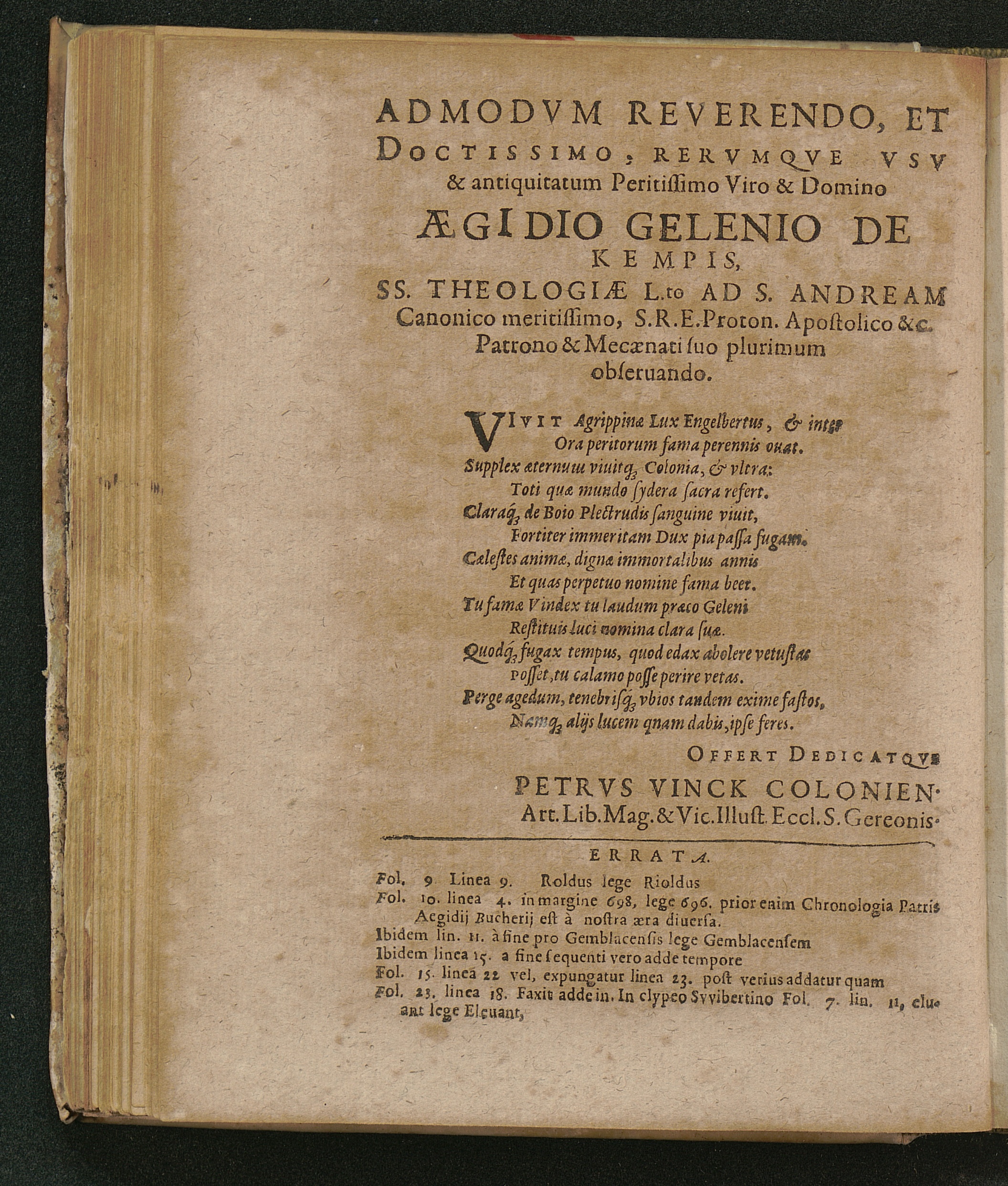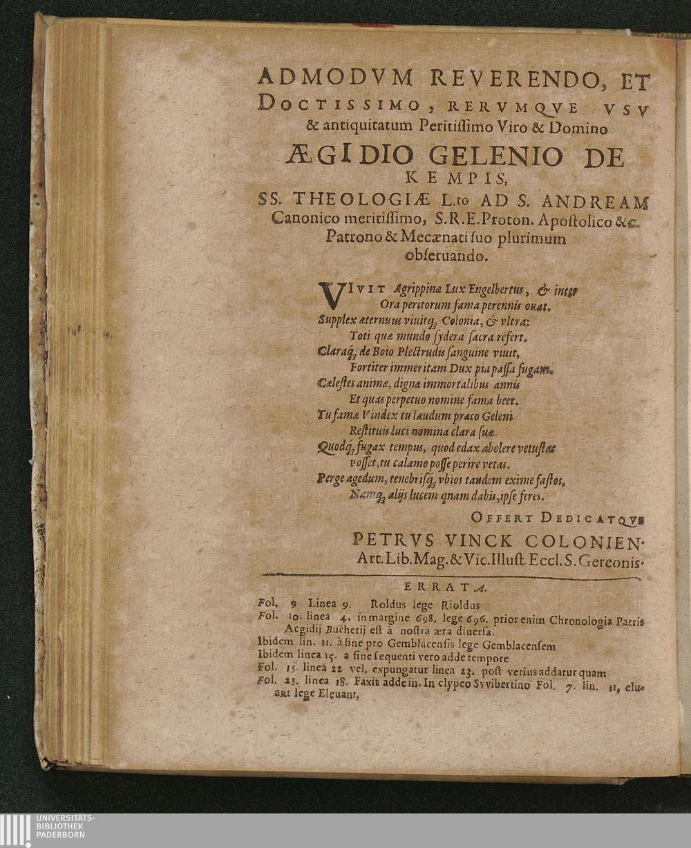 Admodvm Reverendo, Et Doctissimo, Rervmqve vsv & antiquitatum Peritissimo Viro & Domino Aegidio Gelenio De Kempis ...
