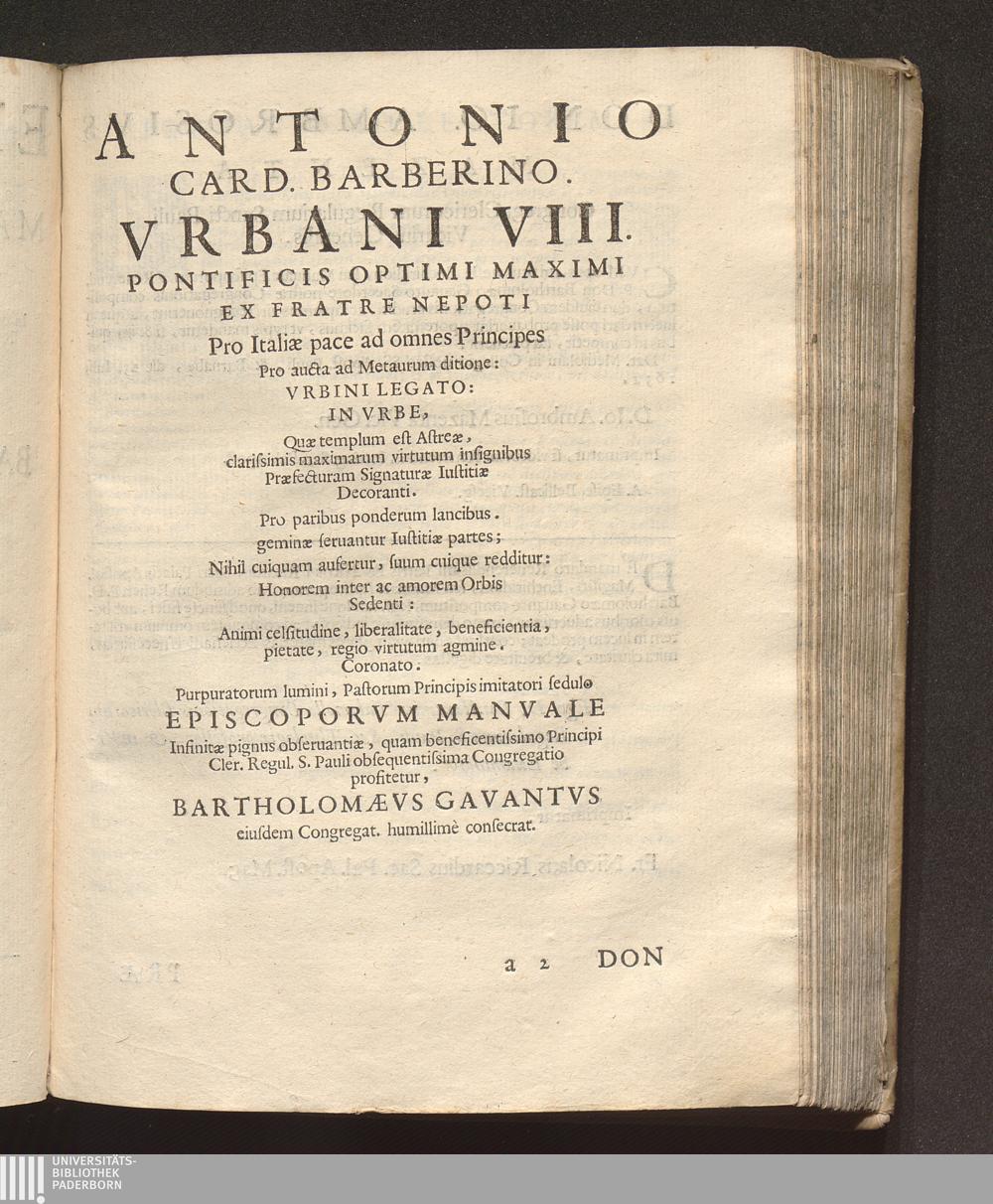 Enchiridion Sev Manvale Episcoporvm Pro Decretis in Visitatione, & Synodo, de quacumque re condendis. : In quo Decreta Concilij Tridentini, Bullarij Pontificij, Sacrarum Congregat. Rom. Conciliorum septem Prouincialium Mediolanen. tùm ea vniuersa ... continentur. / Avctore Bartholomaeo Gavanto Congregat. Cleric. Regul. S. Pauli, & Sac. Rituum Congreg. Consultore.