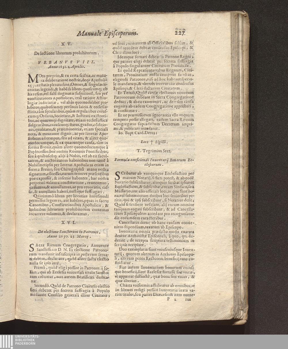 Enchiridion Sev Manvale Episcoporvm Pro Decretis in Visitatione, & Synodo, de quacumque re condendis. : In quo Decreta Concilij Tridentini, Bullarij Pontificij, Sacrarum Congregat. Rom. Conciliorum septem Prouincialium Mediolanen. tùm ea vniuersa ... continentur. / Avctore Bartholomaeo Gavanto Congregat. Cleric. Regul. S. Pauli, & Sac. Rituum Congreg. Consultore.