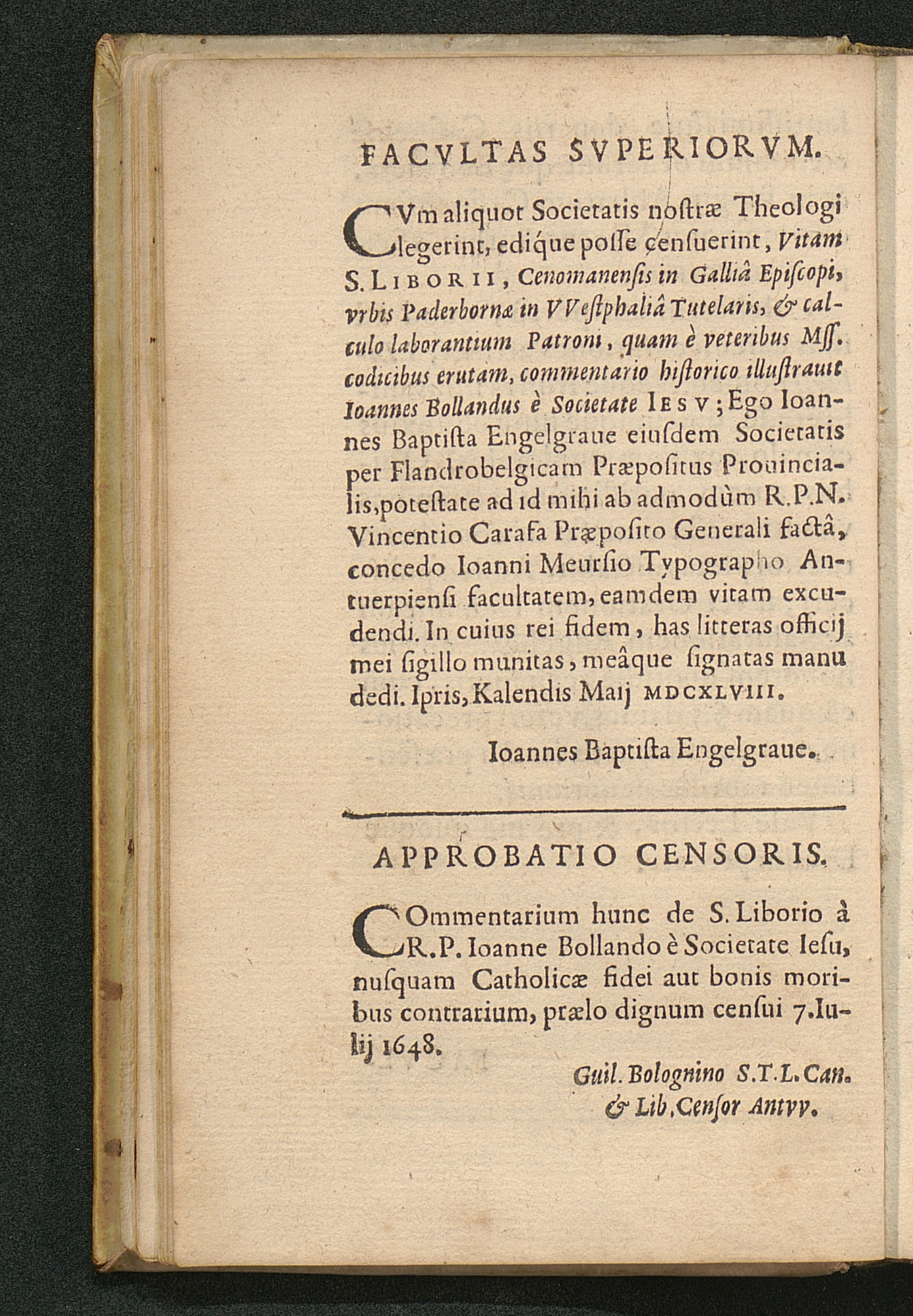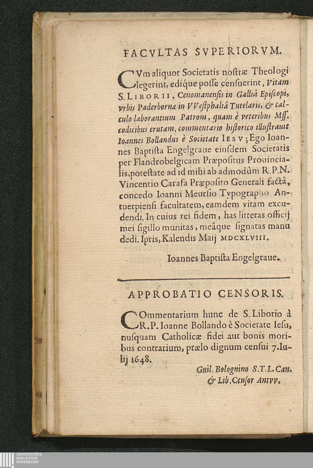 Vita S. Liborii Episcopi, Calcvlo Laborantivm Patroni / E veteribus Mss. eruta, & commentario historico illustrata A Ioanne Bollando E Societate Iesv